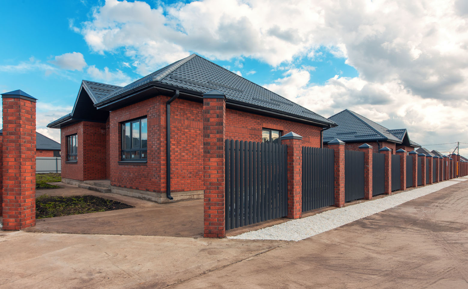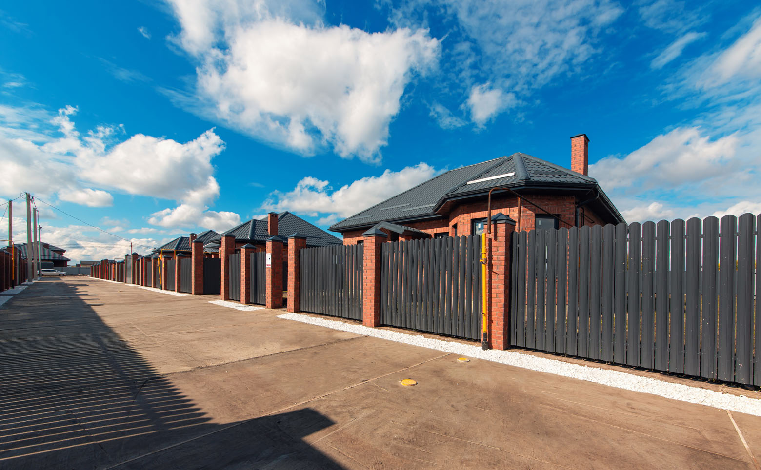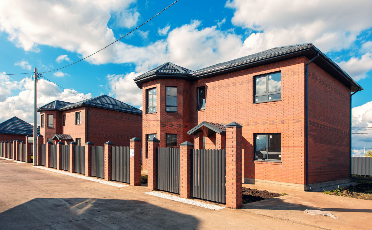 Коттеджный поселок включает в себя 132 коттеджа нескольких типов. Дома возводятся по долговечной кирпичной технологии. В оформлении фасада используется облицовочный кирпич.