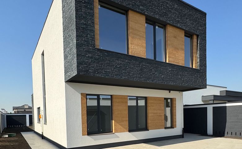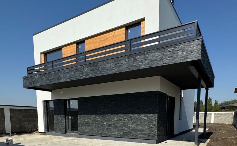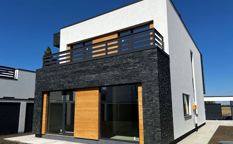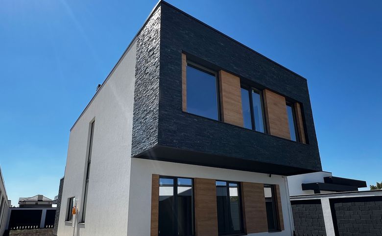 Коттеджный поселок состоит из 7 домов на участках 6 соток с придомовой зоной 5 м. Здания возведены на свайно-ростверковом фундаменте, с бетонными стенами и двойным армированием перекрытий. Фасады выполнены по системе мокрого фасада с использованием натурального камня и декоративной штукатурки под дерево.
