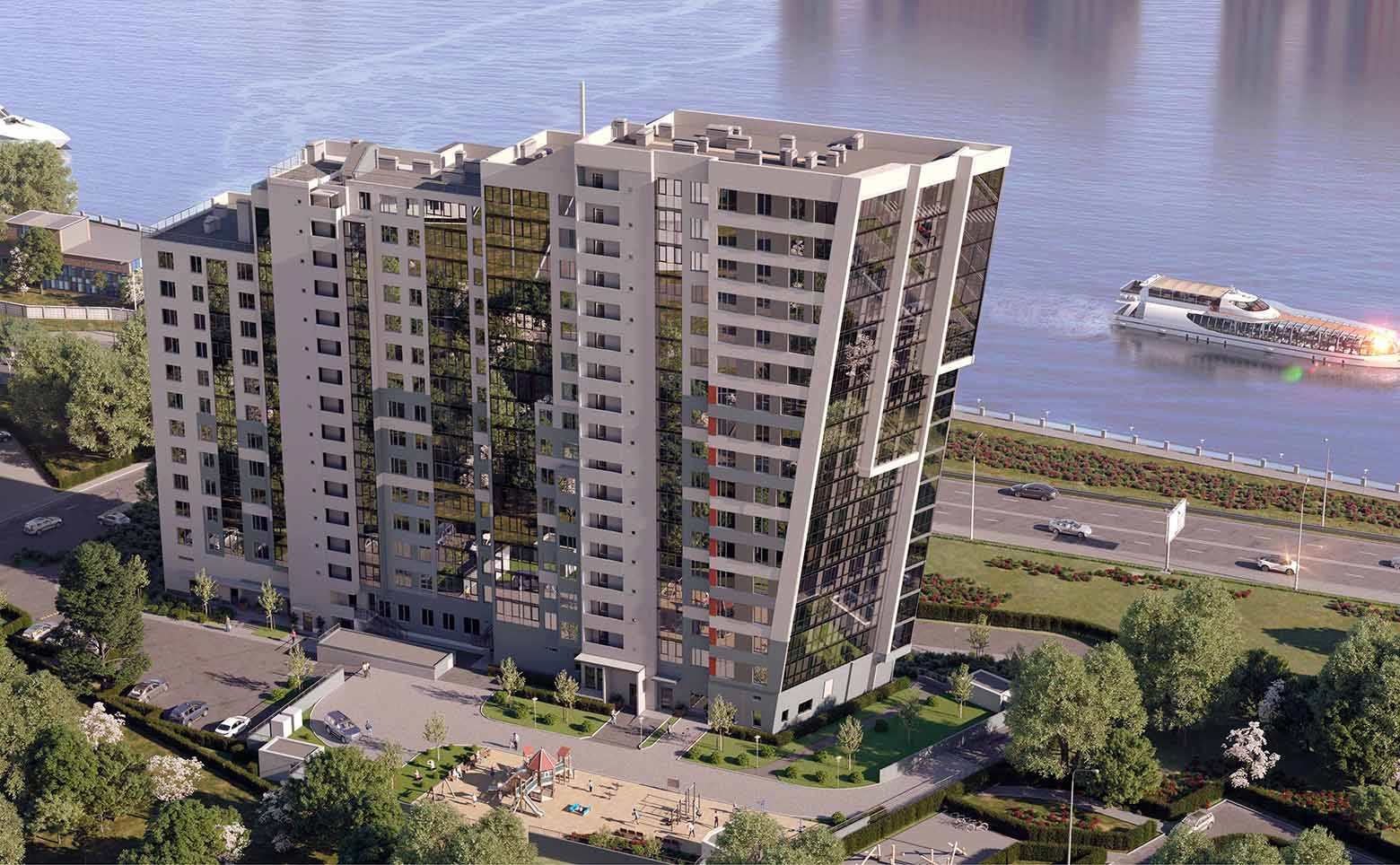 «Лайнеръ» – это двухсекционный дом переменной этажности. Подземный паркинг рассчитан на 151 место. На закрытой дворовой территории разместятся детские площадки, места для отдыха. В доме предусмотрены квартиры разных метражей – от студий до трехкомнатных, в том числе европланировки с просторной кухней-гостиной. Из окон многих квартир будут открываться потрясающие виды на Неву и окрестности.