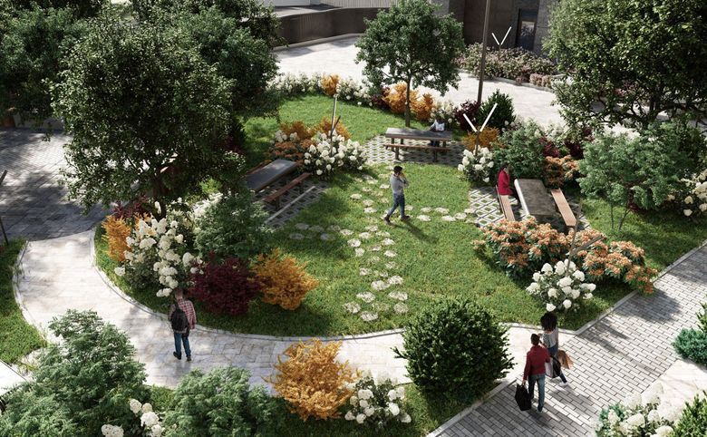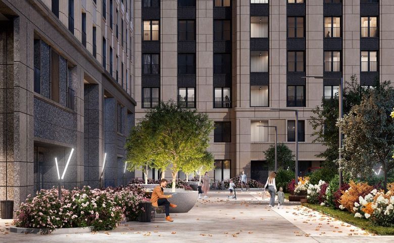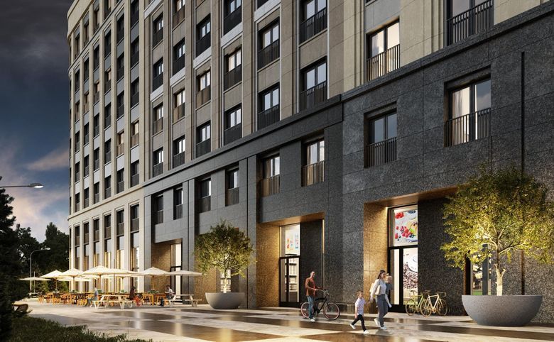 Отличительной особенностью этого проекта является внутренний двор-сквер, пространство одновременно парадное и камерное. Во дворе есть современные детские игровые зоны, площадки для занятий спортом, места для отдыха с гамаками и лежаками, а также шахматные и теннисные столы. Здесь также можно устроить пикник или насладиться отдыхом в амфитеатре. Первые этажи здания предназначены для коммерческих площадей. Здесь размещены магазины, кофейни и рестораны. Для автовладельцев предусмотрен охраняемый подземный паркинг.