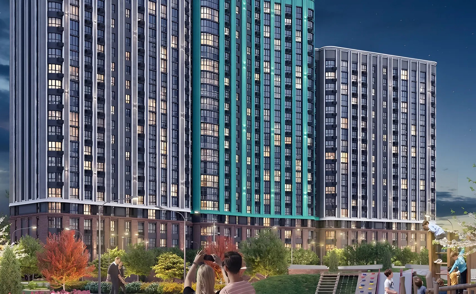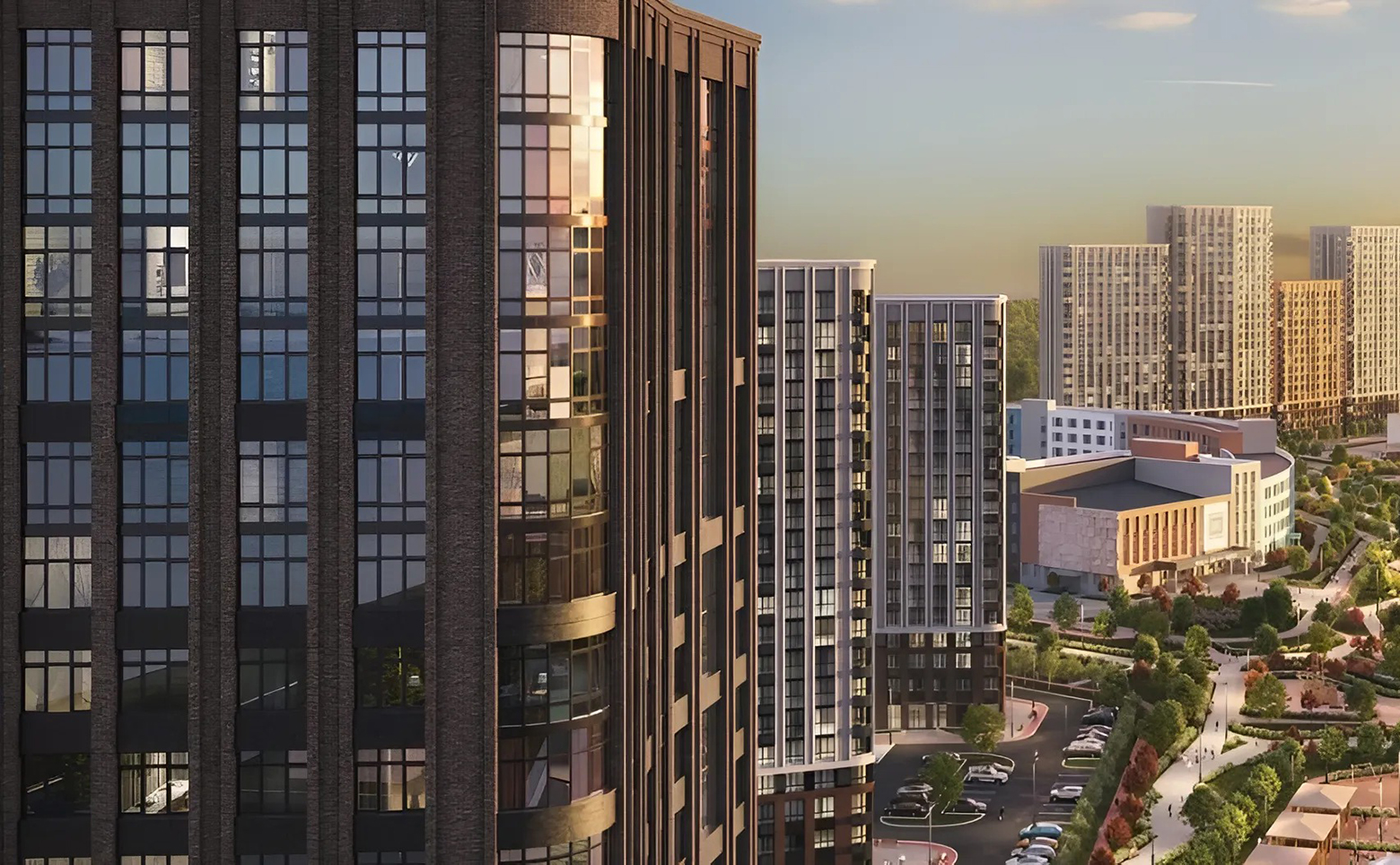 На территории жилого комплекса расположены детские и спортивные площадки, игровые городки, спроектирован парк, поле для спортивных игр. В проекте предусмотрены своя поликлиника, два детских сада и школа. На первых этажах коммерческие помещения. Для владельцев автомобилей продуманы наземный и подземный паркинги.