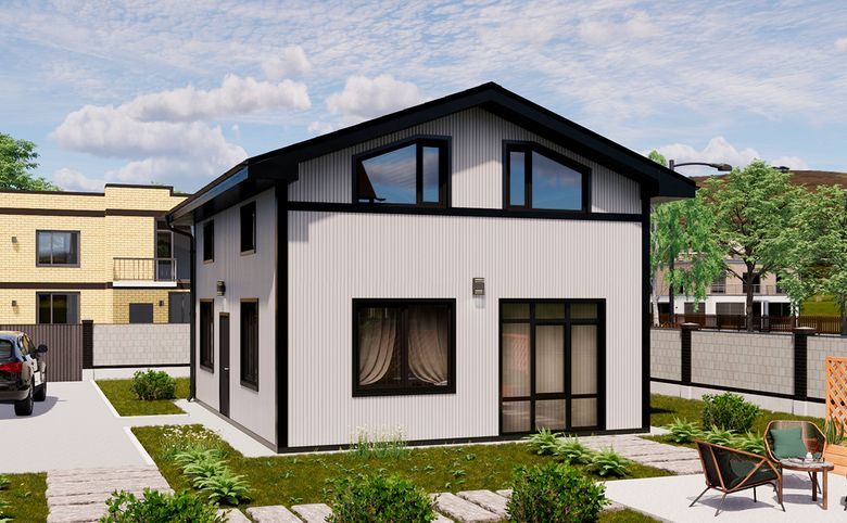 В проекте предлагаются коттеджи площадью от 70 до 110 кв. м. Предусмотрены стандартные и увеличенные окна, витражные конструкции, а также окна в ванной комнате. Высота потолков составляет 2,8 м. Дома передаются в подчистовой отделке: выполнена стяжка пола, стены отделаны гипроком, потолки — фанерой. Установлены металлопластиковые окна с черной или серой рамой снаружи и белой изнутри, включая витражное окно с дверью. Выполнена разводка электрики, предусмотрены закладные под фановые трубы и водоснабжение, смонтированы электрический котел, система водяных теплых полов и приточно-вытяжная вентиляция.