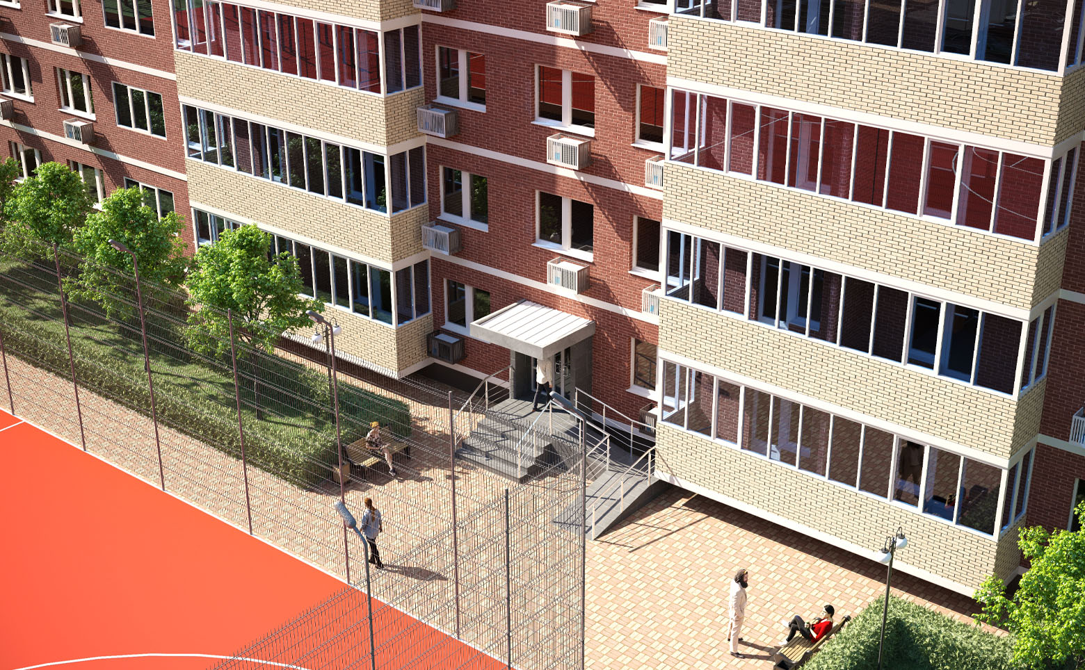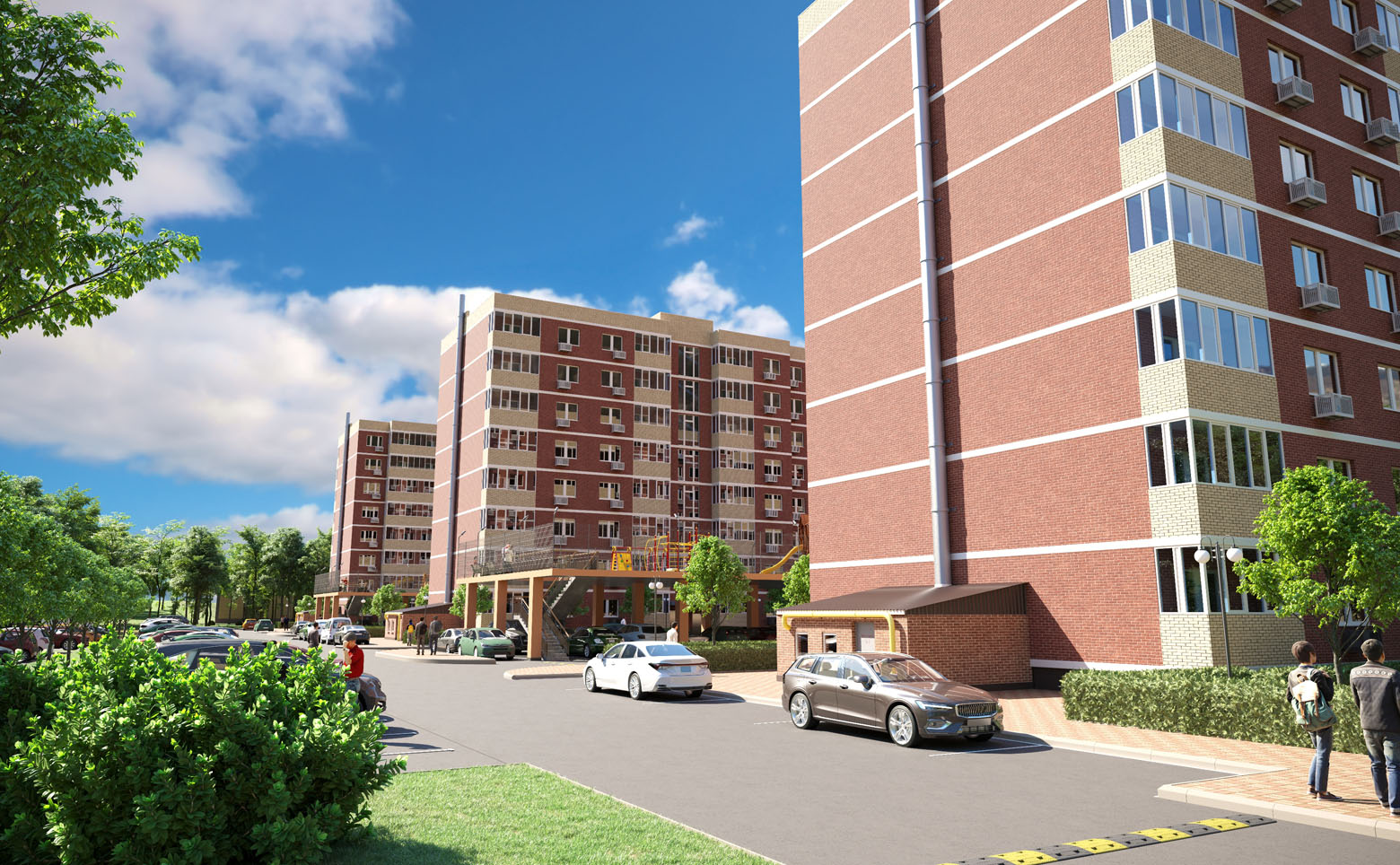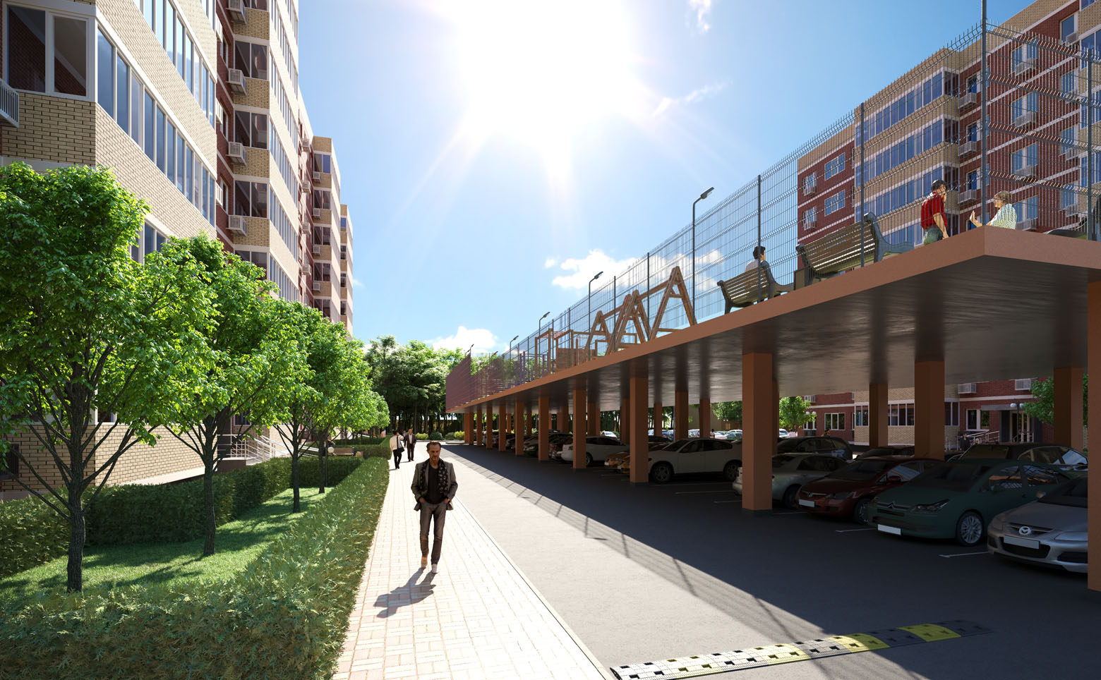 Территория комплекса благоустроена и озеленена. Предусмотрены современные детские, игровые и спортивные площадки, а также зоны отдыха на стилобате. Для автовладельцев организована парковка во дворе и под стилобатом.