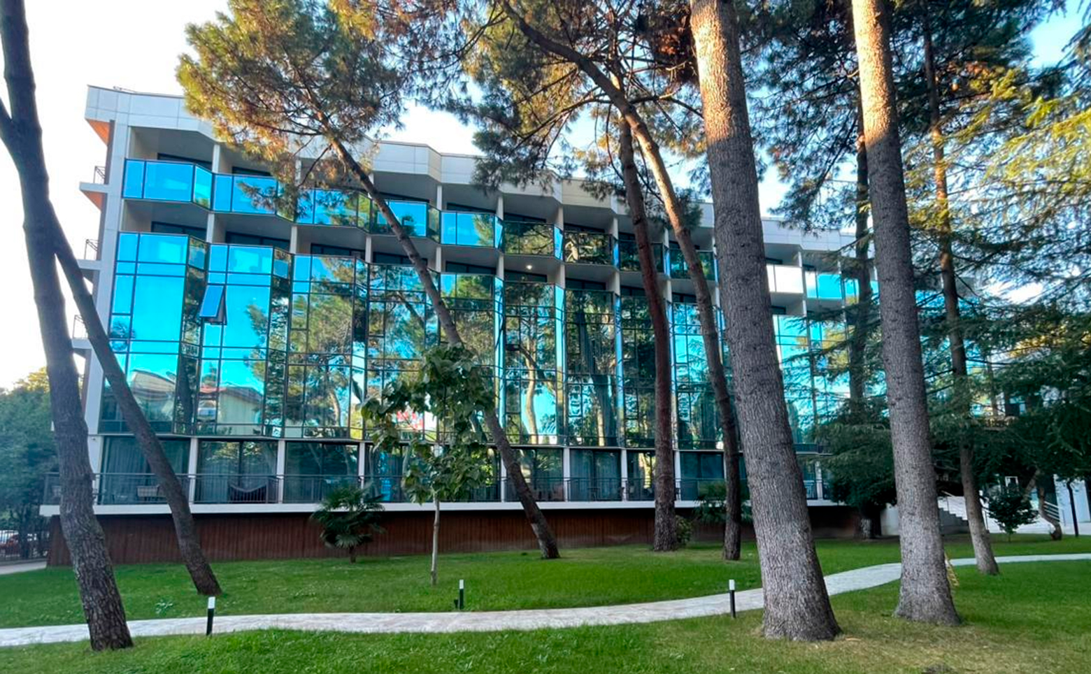 Гостиничный комплекс представляет собой 2 корпуса с профилем Reynaers Aluminium и панорамным остеклением Гардиан, имеющие напыление из серебра, с открытыми террасами и балконами. В лобби выполнена дизайнерская отделка и установлены современные лифты и расположен ресепшен.