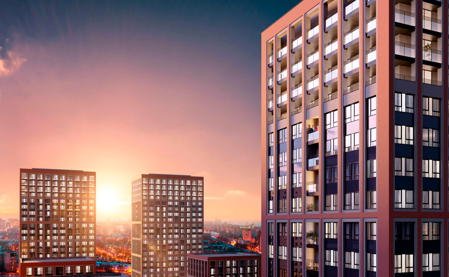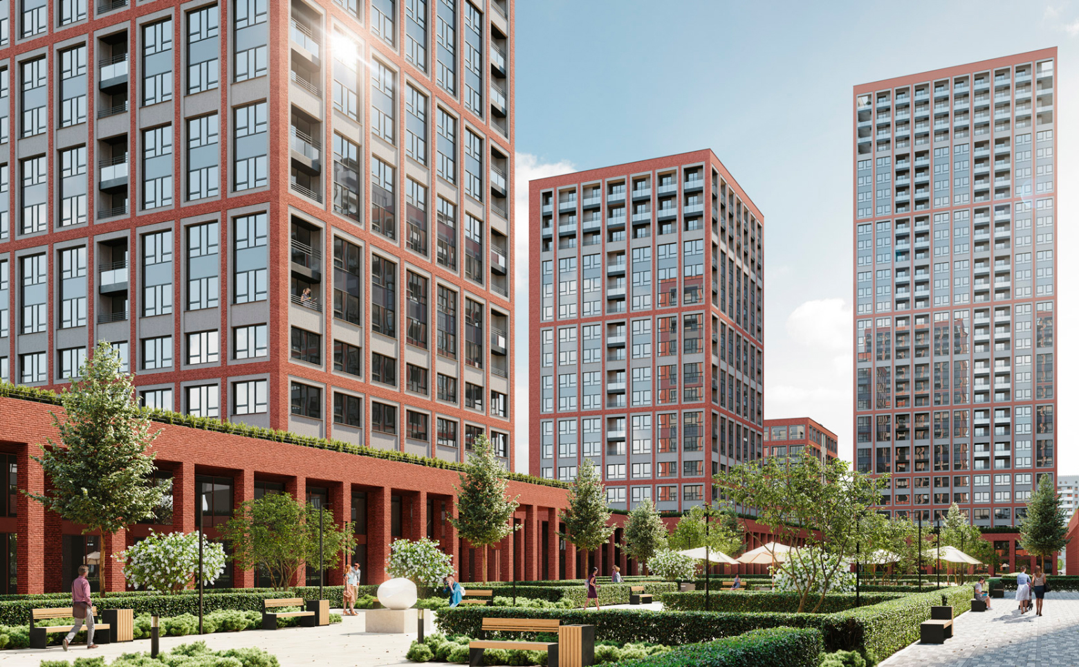 В проекте можно подобрать квартиру с мастер спальней, гардеробной с окном и террасой. В новом проекте архитекторы предусмотрели террасы 3 типов. Первый — прогулочные, опоясывают последние этажи самых высоких башен. С прогулочных открывается панорамный вид на город. Второй тип — террасы на стилобате, примыкают к квартирам на третьих этажах. Третий тип — террасы на кровле. Квартиры с таким планировочным решением предусмотрены в урбан-виллах. Также в урбан-виллах спроектированы двухуровневые пентхаусы.