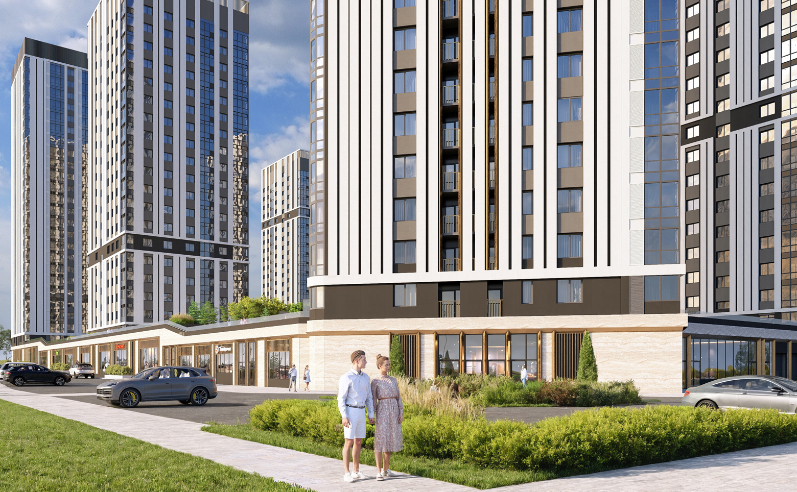 Жилой комплекс комфорт-класса состоит из 5 монолитно-кирпичных домов переменной этажности — от 20 до 25 этажей, объединенных стилобатом. Площадь застройки составляет 4,2 га. В строительстве используются энергоэффективные технологии, применяется навесная вентилируемая фасадная система из алюминиево-композитных панелей с пониженными шумовыми характеристиками. Фасады оснащены архитектурной подсветкой, а холлы оформлены по индивидуальному дизайн-проекту. В каждом доме установлены высокоскоростные пассажирские и грузопассажирские лифты с доступом в подземный паркинг. В лобби запроектированы колясочные, лапомойки, зона ожидания с коворкингом и переговорной, ивент-комната и ресепшен.