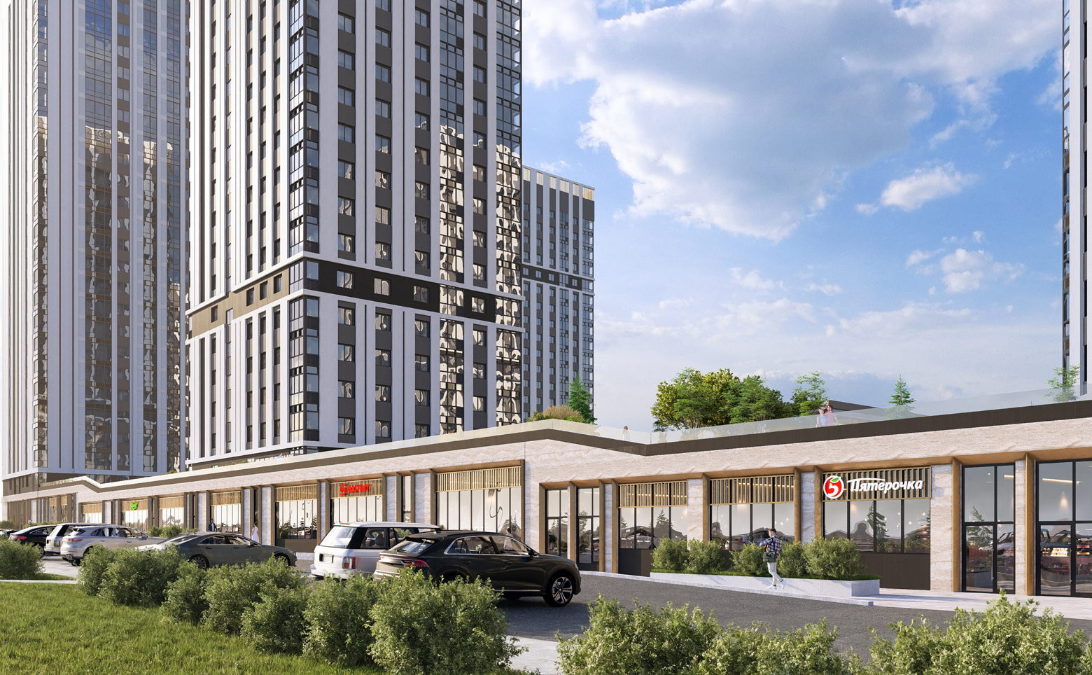 На закрытой благоустроенной территории расположены детские и спортивные площадки, прогулочные зоны со скамейками и навесами, арт-объекты, площадка для собраний и зона выгула для животных. Также доступны подземный паркинг и детский сад на 125 мест. Визитной карточкой комплекса является лаунж-зона на эксплуатируемой кровле стилобата, с прогулочными террасами, аптекарским огородом и качелями-гамаками. На первых этажах с внешней стороны расположены коммерческие пространства. Установлена система контроля доступа и видеонаблюдение по периметру комплекса, в местах общего пользования и в паркинге.