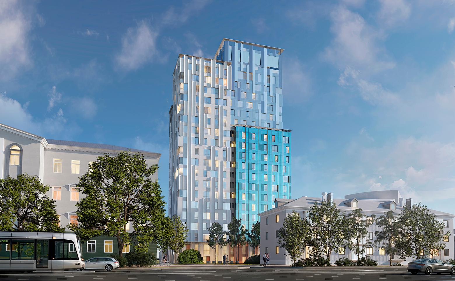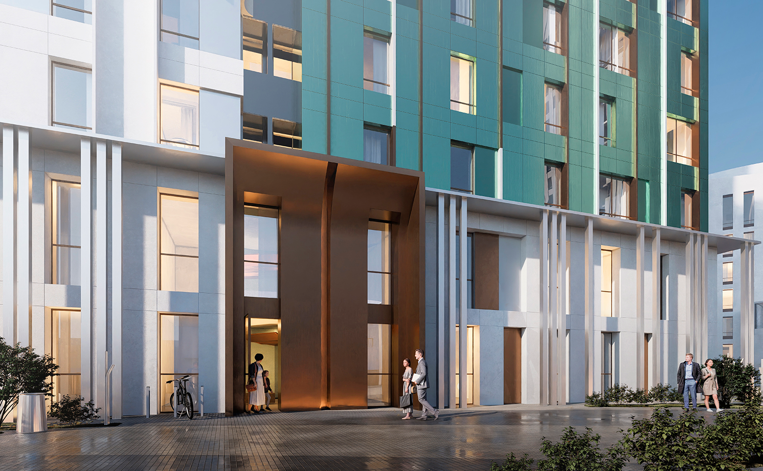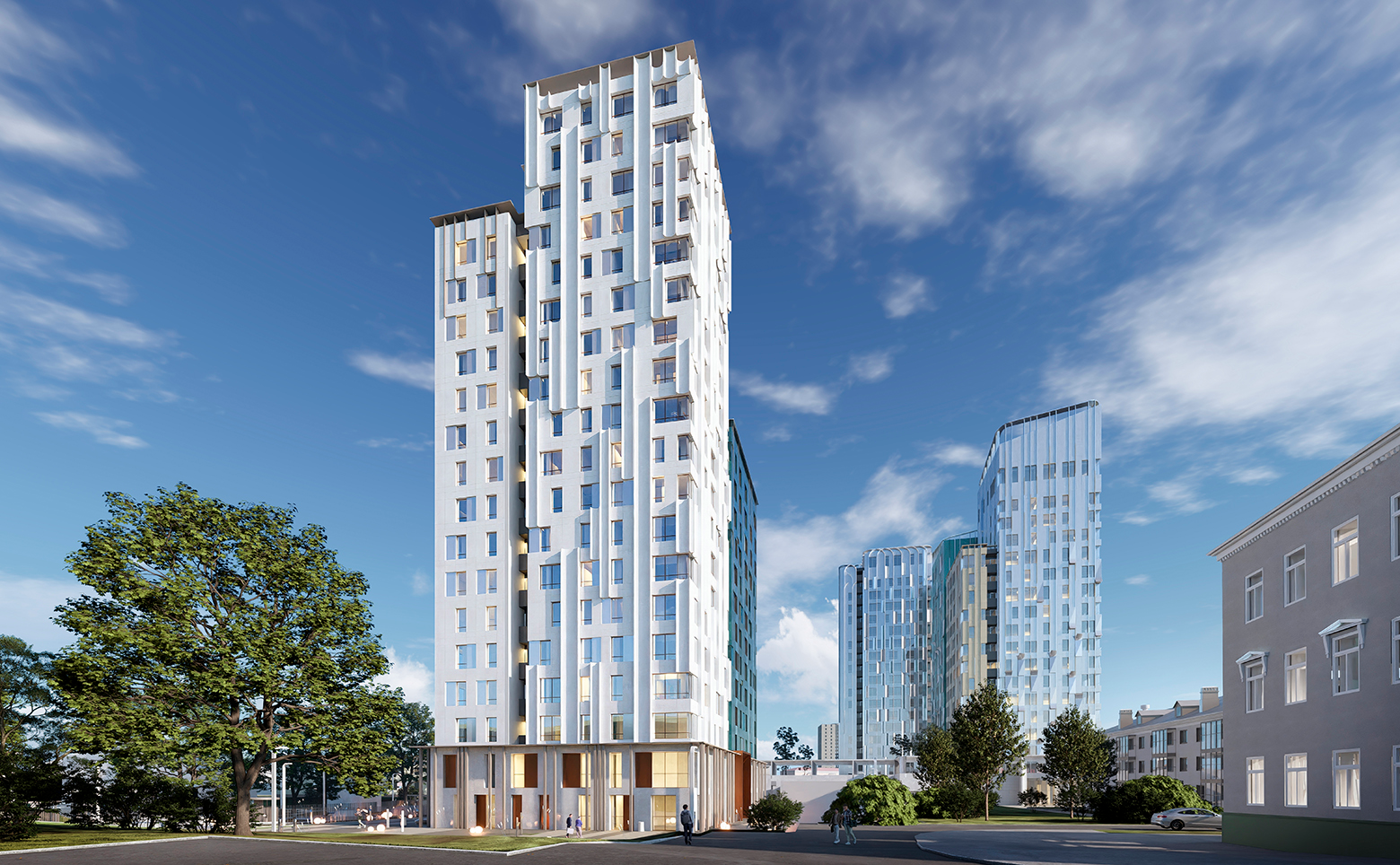 Современный проект, возведенный по технологии кирпично-монолитного строительства с вентилируемыми панельными фасадами. В здании предусмотрен пассажирский и грузовой лифты. Входные группы выполнены в дизайнерской отделке.