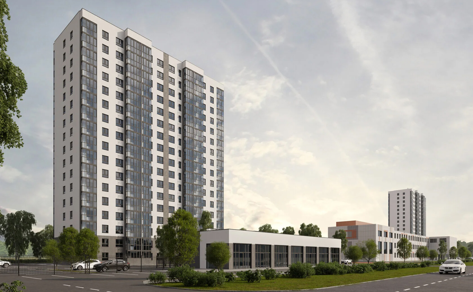 На территории комплекса обустроены игровые площадки для детей, спортивная площадка и зона отдыха. Организована стоянка для авто. Здание оборудовано системой обнаружения и оповещения о пожаре, системой дымоудаления и умной домофонией. Территория закрыта от посторонних, ведется видеонаблюдение.