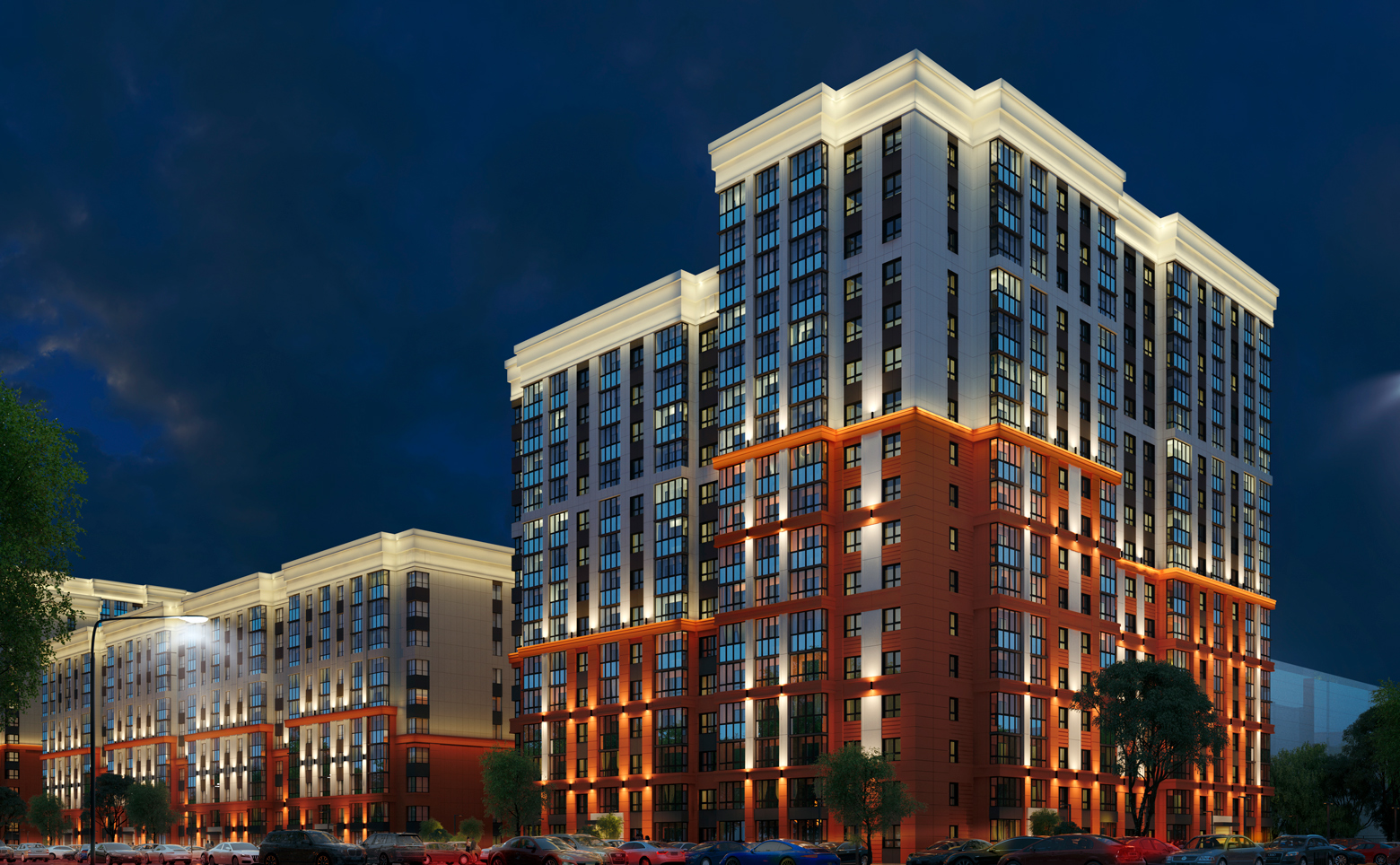 Жилой комплекс состоит из комплексной застройки домов высотой от 10 до 17 этажей. В оформлении стен зданий используется навесной вентилируемый фасад из панелей. Во всех входных группах выполнена дизайнерская отделка и установлены современные лифты.