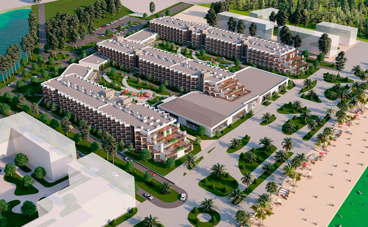 Проект расположен на побережье Темрюкского залива, здесь есть вся необходимая инфраструктура. Недалеко от гостиничного комплекса можно найти аквапарк, океанариум, дельфинарий, зоопарки и парк аттракционов. До центра города можно добраться за 15 минут транспортом.