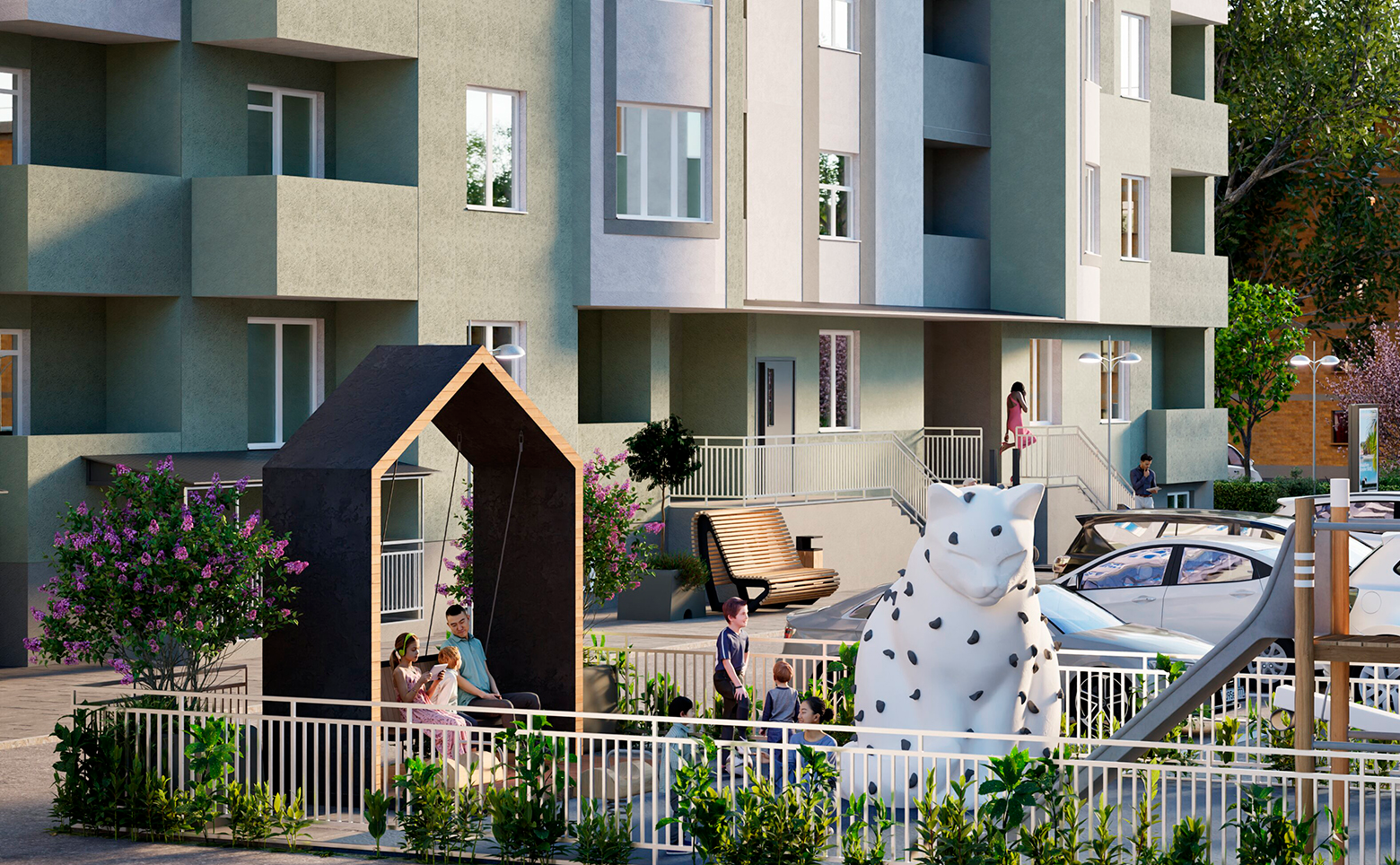 Внутренняя инфраструктура жилого комплекса ориентирована на обеспечение комфортного проживания жильцов. Двор комплекса благоустроен, на территории обустроены зоны отдыха, детские и спортивные площадки с безопасным покрытием. Комплекс оснащён системами видеонаблюдения и контроля доступа, что обеспечивает высокий уровень безопасности для жителей. Для владельцев автомобилей предусмотрена стоянка.