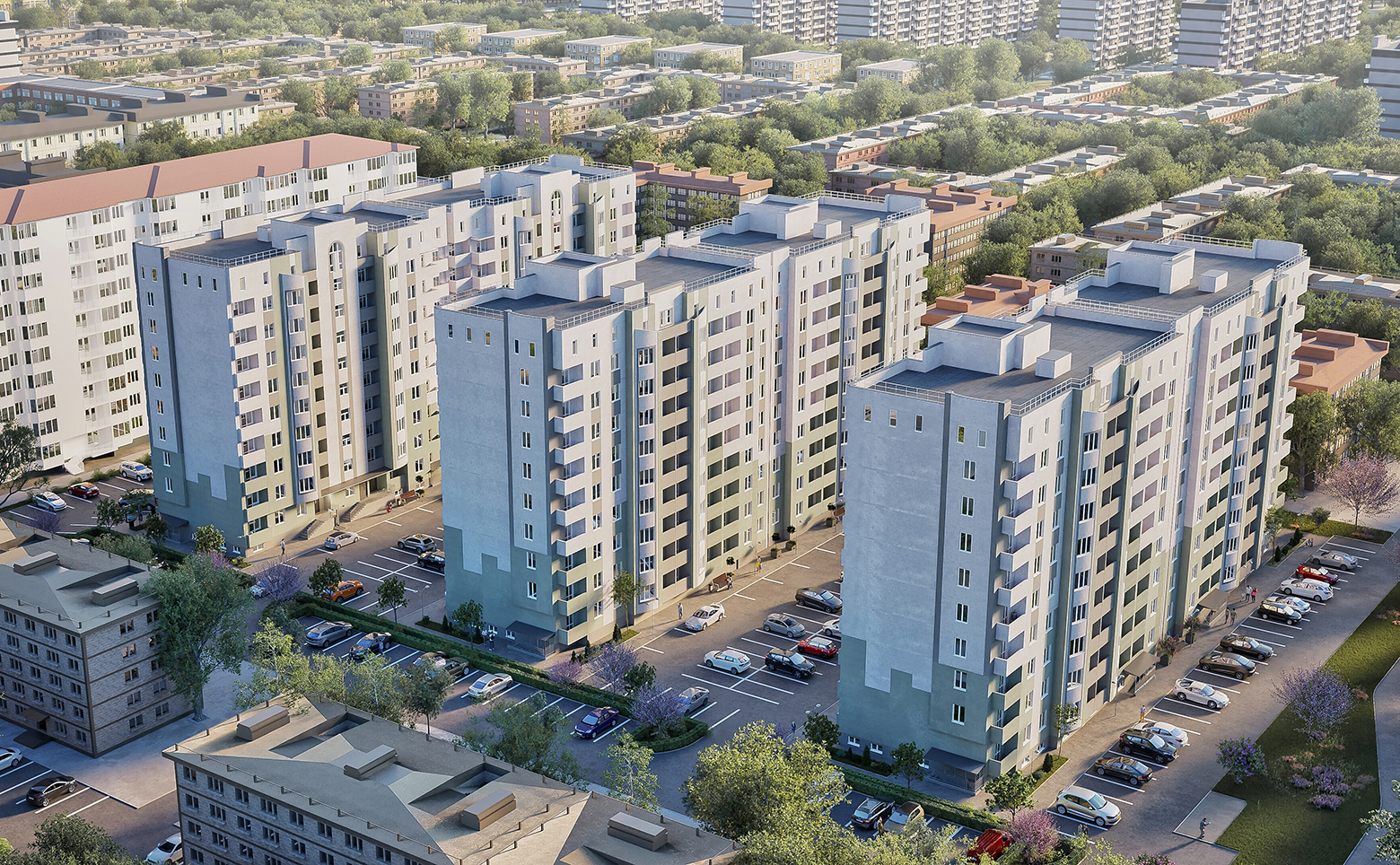 Жилой комплекс представляет собой 3 корпуса комфорт-класса, строительство которых осуществляется по монолитной технологии, обеспечивающей прочность и долговечность конструкций. Фасады здания облицованы штукатуркой, придающей современный и лёгкий вид. В домах установлены современные скоростные лифты.