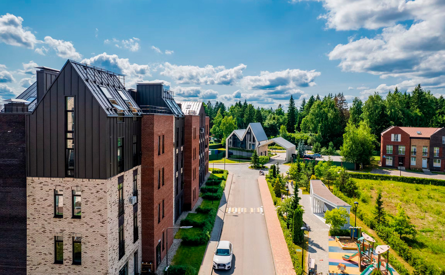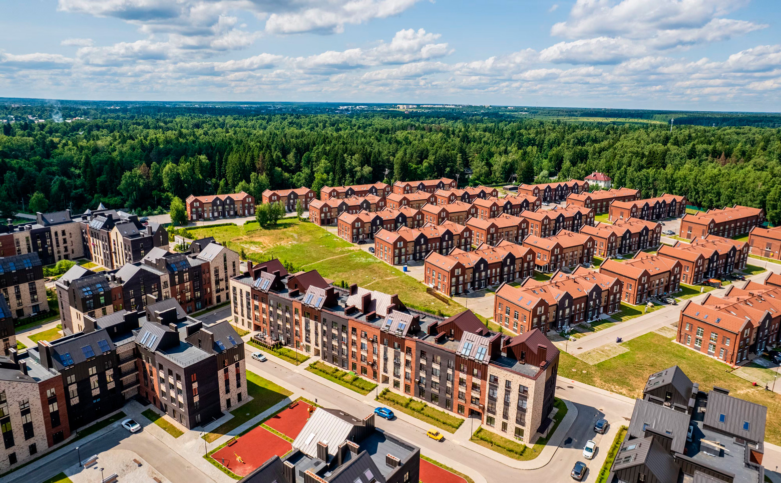 20 минут от Москвы по Киевскому шоссе, территории Апрелевка. Автобусная остановка в 100 м от ЖК, Ж/д станция в 1,3 км. Квартиры от 31 до 84м², таунхаусы от 114 до 180м². Уникальные форматы квартир: квартиры на первых этажах имеют выход на земельный участок, квартиры на последних - выход на крышу.