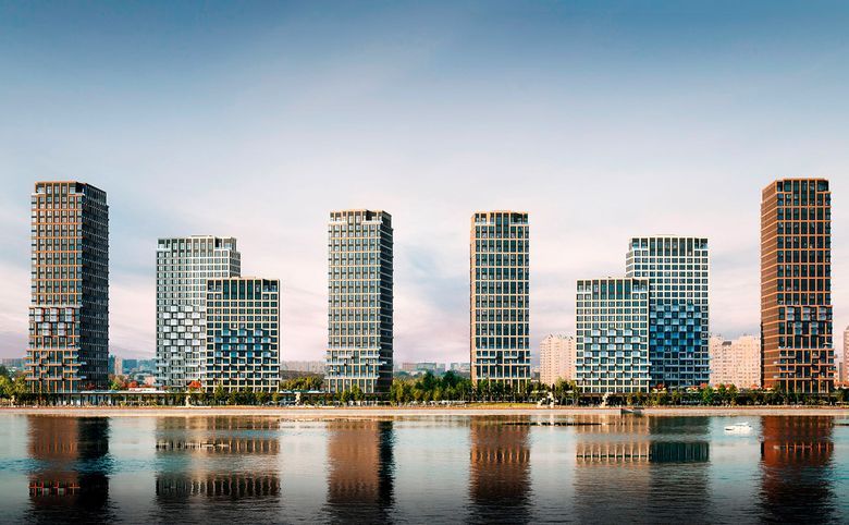 Архитектурный проект разработан амстердамским бюро Cie. Комплекс состоит из 2 очередей. В каждой по 4 башни, объединенных между собой торговыми галереями, образующими тихие дворы. Ступенчатые фасады облицованы бетонной плиткой, клинкерным кирпичом. В дизайнерском лобби круглосуточно работает консьерж служба.