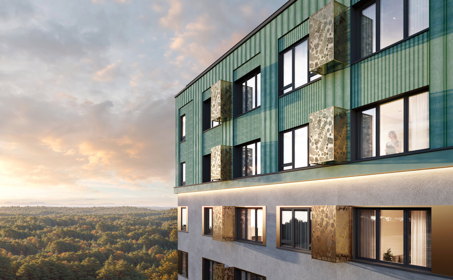 Жилой комплекс комфорт-класса состоит из разноэтажных домов, возведенных по кирпично-монолитной технологии с комбинированными фасадами. В корпусах установлены пассажирские и грузовые лифты. Холлы оформлены с зонами ожидания и буккроссингом, предусмотрены система распознавания лица и виртуальный консьерж.