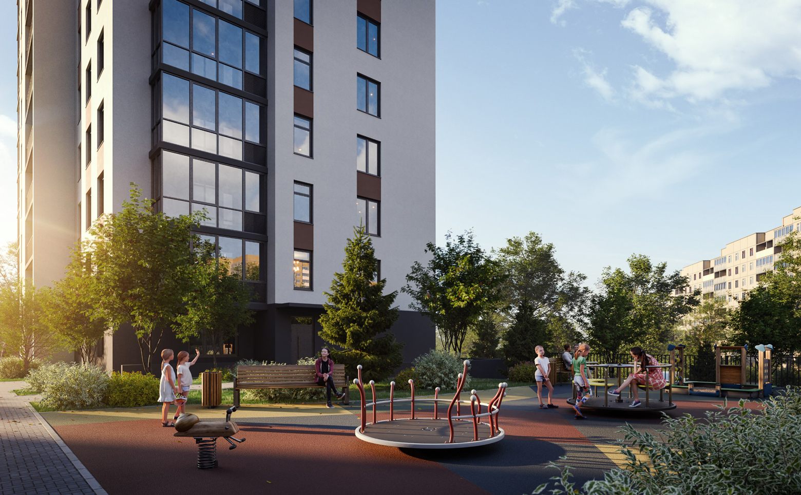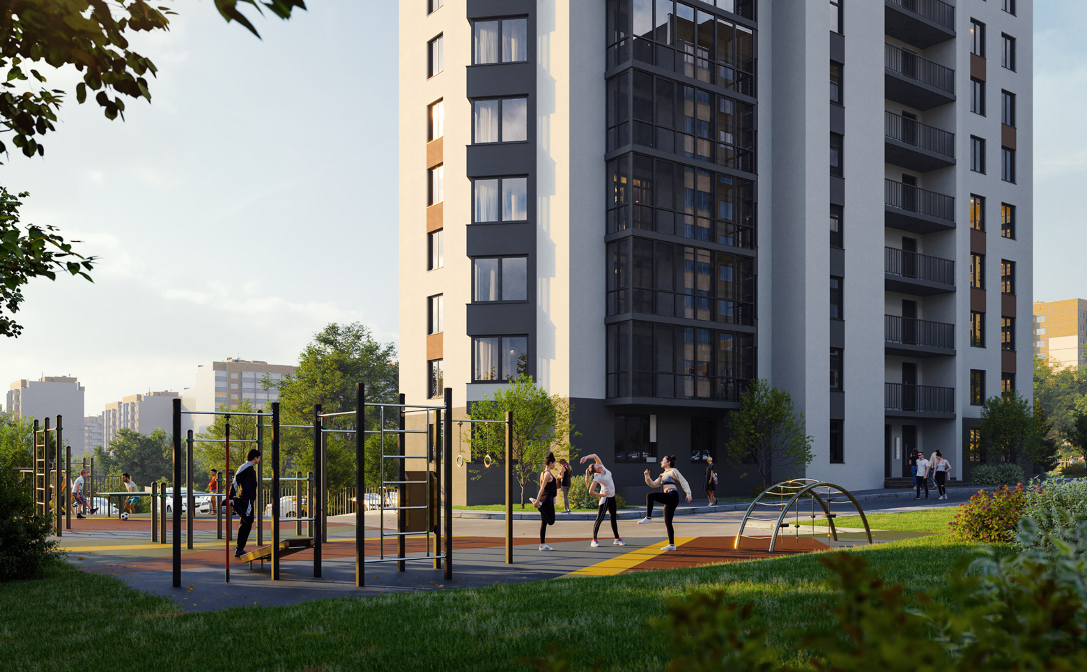 Во внутреннем дворе жилого комплекса расположены детские площадки для разных возрастов, просторная зона с уличными тренажерами для занятия спортом. В парковой зоне проходят беговые и велосипедные маршруты, а зимой на территории действует несколько лыжных баз. Двор огражден с видеонаблюдением и мягким освещением. Для автомобилей предусмотрена стоянка.
