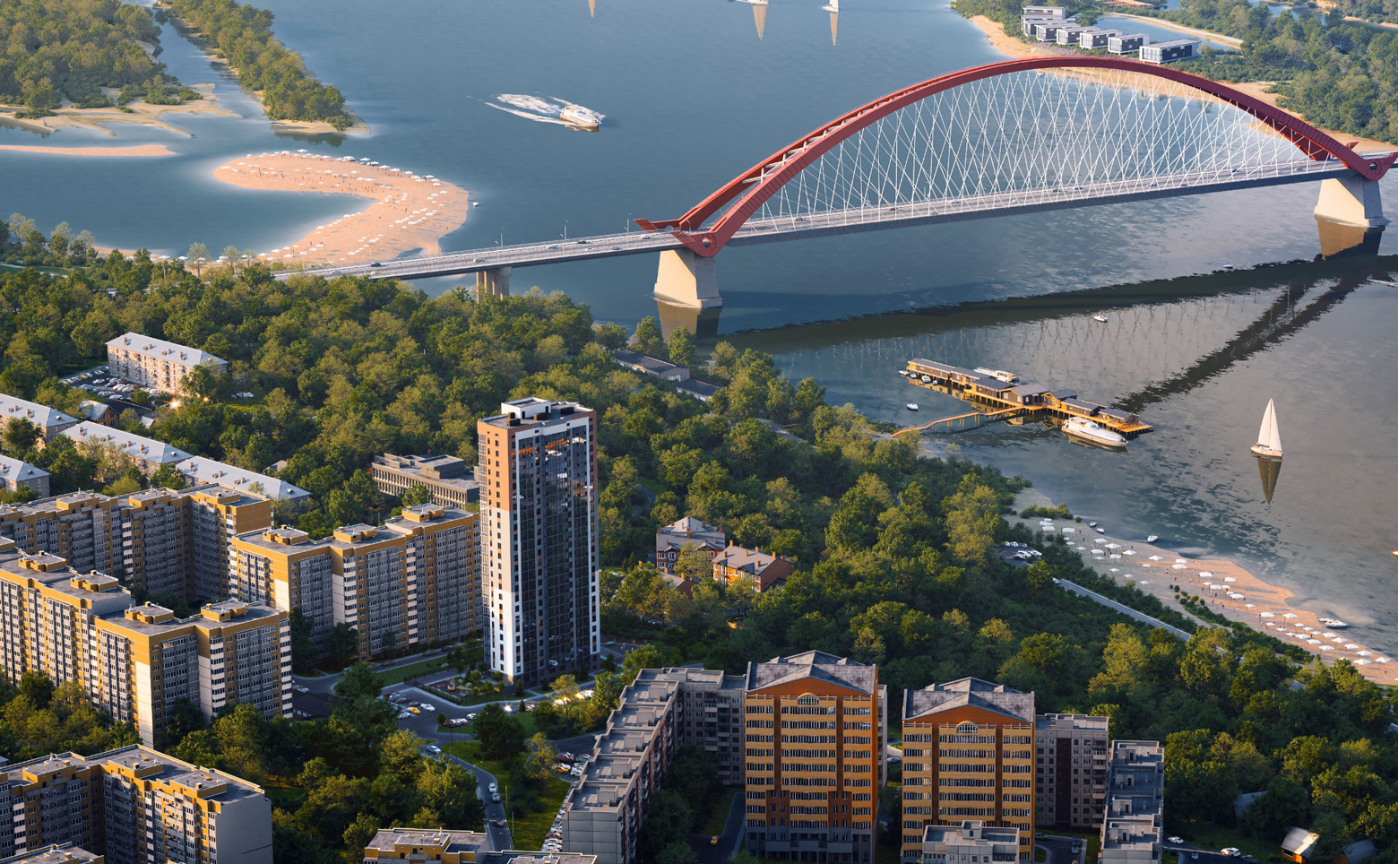 Жилой комплекс расположен на берегу реки Обь в микрорайоне Бугринская роща. ПКиО Бугринская роща находится в 5 минутах пешком, а в 10 минутах — пляж Бугринская роща. В 5 минутах транспортом расположен СТЦ Мега. Метро Площадь Маркса в 10 минутах транспортом.