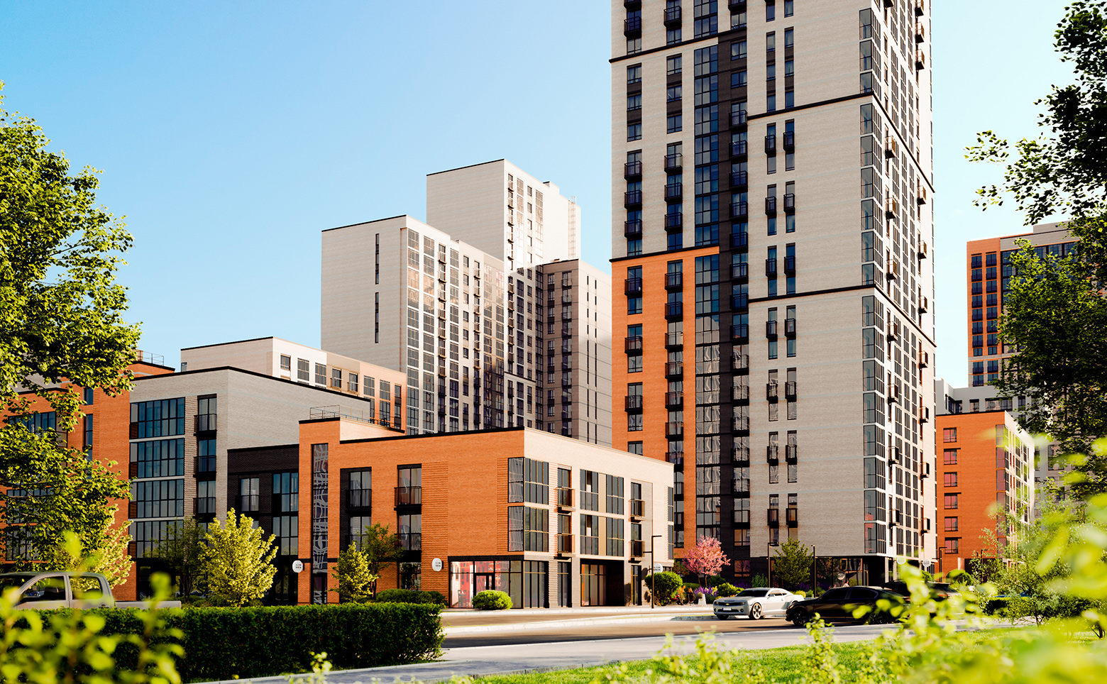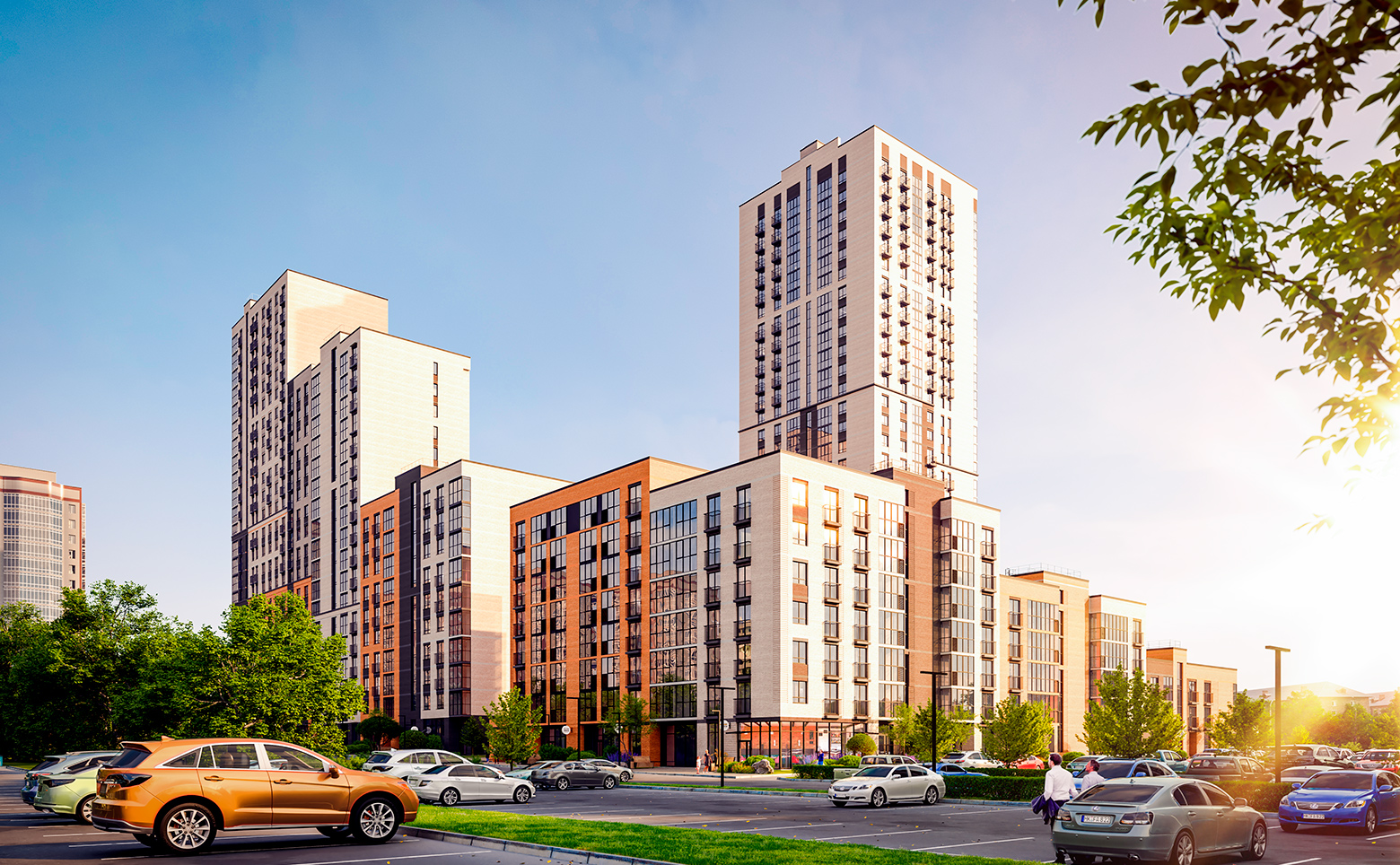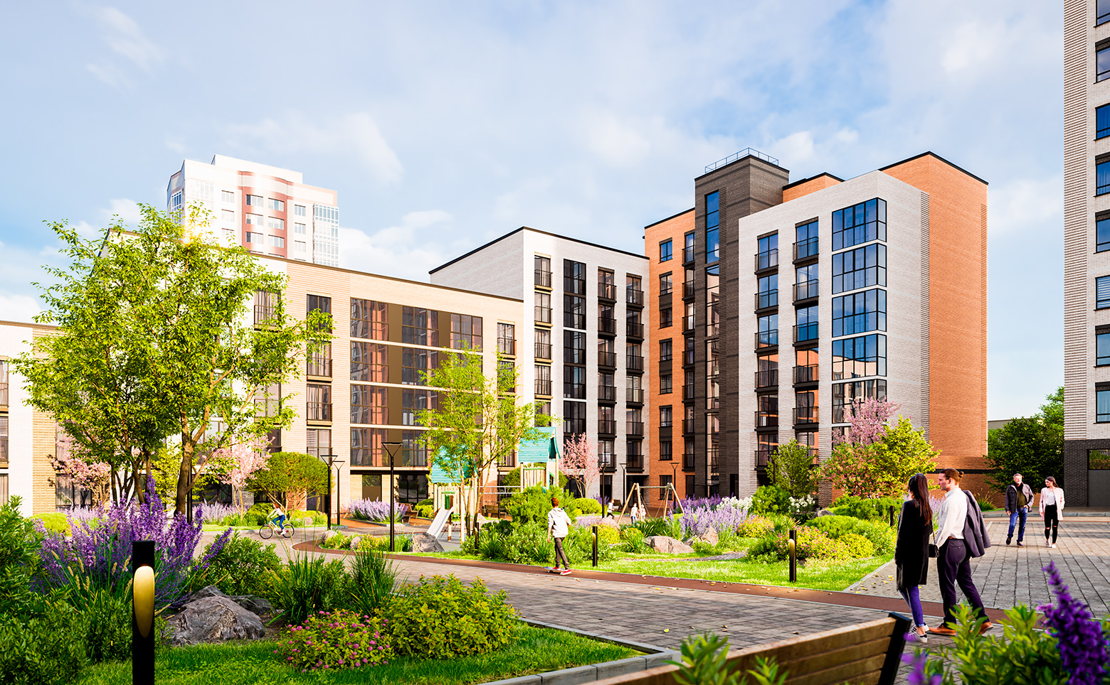 Придомовое пространство комплекса — это тихий двор без машин и безопасное проживание. Территория огорожена, оборудована детскими и спортивными площадками для разных возрастов, развивающими игровыми зонами, местами для прогулок и отдыха. Для владельцев автомобилей на территории комплекса предусмотрена теплая подземная парковка, которая соединена с жилой частью дома пассажирскими и грузопассажирскими лифтами. Доступ посторонних лиц и случайных автомобилей исключен — управление воротами и шлагбаумами осуществляется по индивидуальным брелокам-датчикам владельцев парковочных мест.