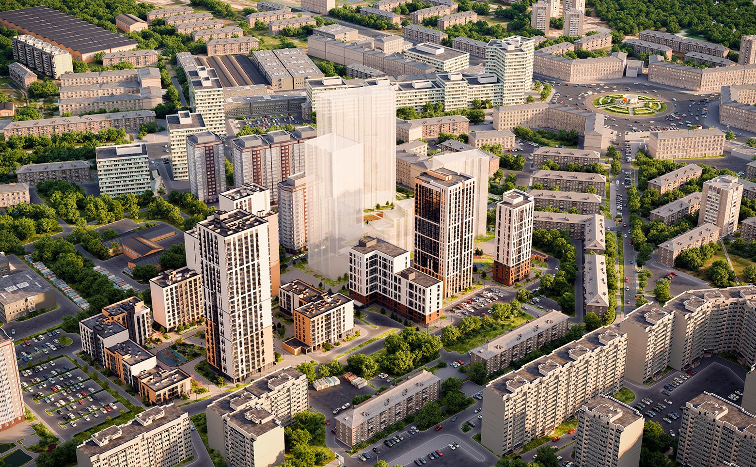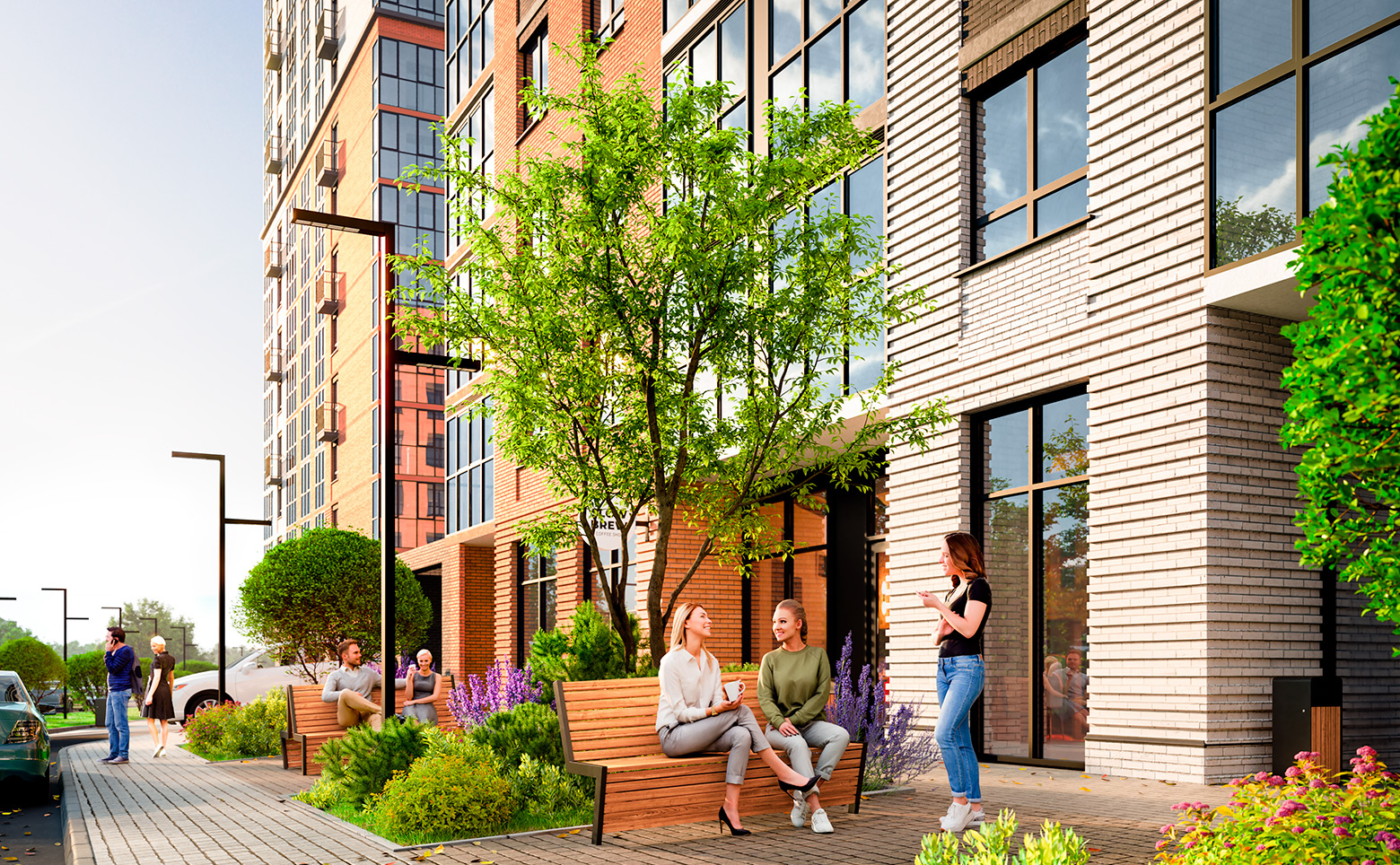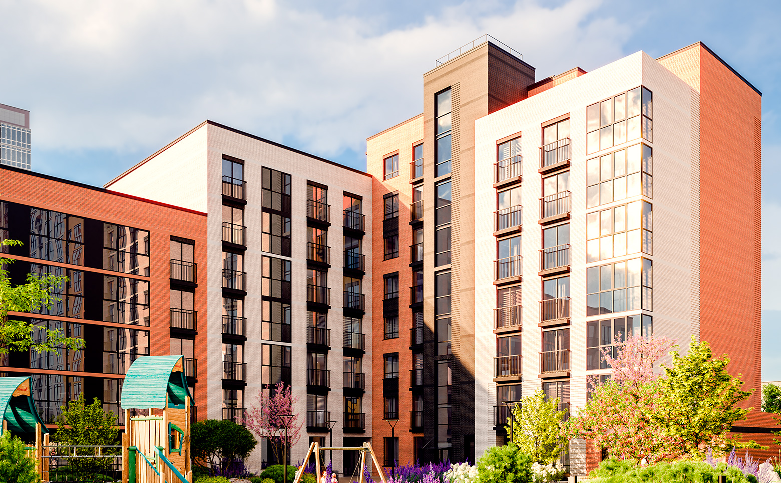 Придомовое пространство комплекса — это тихий двор без машин и безопасное проживание. Территория огорожена, оборудована детскими и спортивными площадками для разных возрастов, развивающими игровыми зонами, местами для прогулок и отдыха. Для владельцев автомобилей на территории комплекса предусмотрена теплая подземная парковка, которая соединена с жилой частью дома пассажирскими и грузопассажирскими лифтами. Доступ посторонних лиц и случайных автомобилей исключен — управление воротами и шлагбаумами осуществляется по индивидуальным брелокам-датчикам владельцев парковочных мест.
