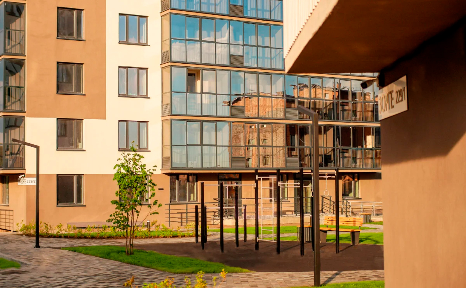 В проекте предусмотрен тихий и уютный двор с зоной воркаут, зонами для игр и отдыха. В проекте предусмотрен консьерж сервис. На первых этажах расположены коммерческие помещения. Для владельцев автомобилей предусмотрена наземная парковка. По всей территории ЖК ведется видеонаблюдение.