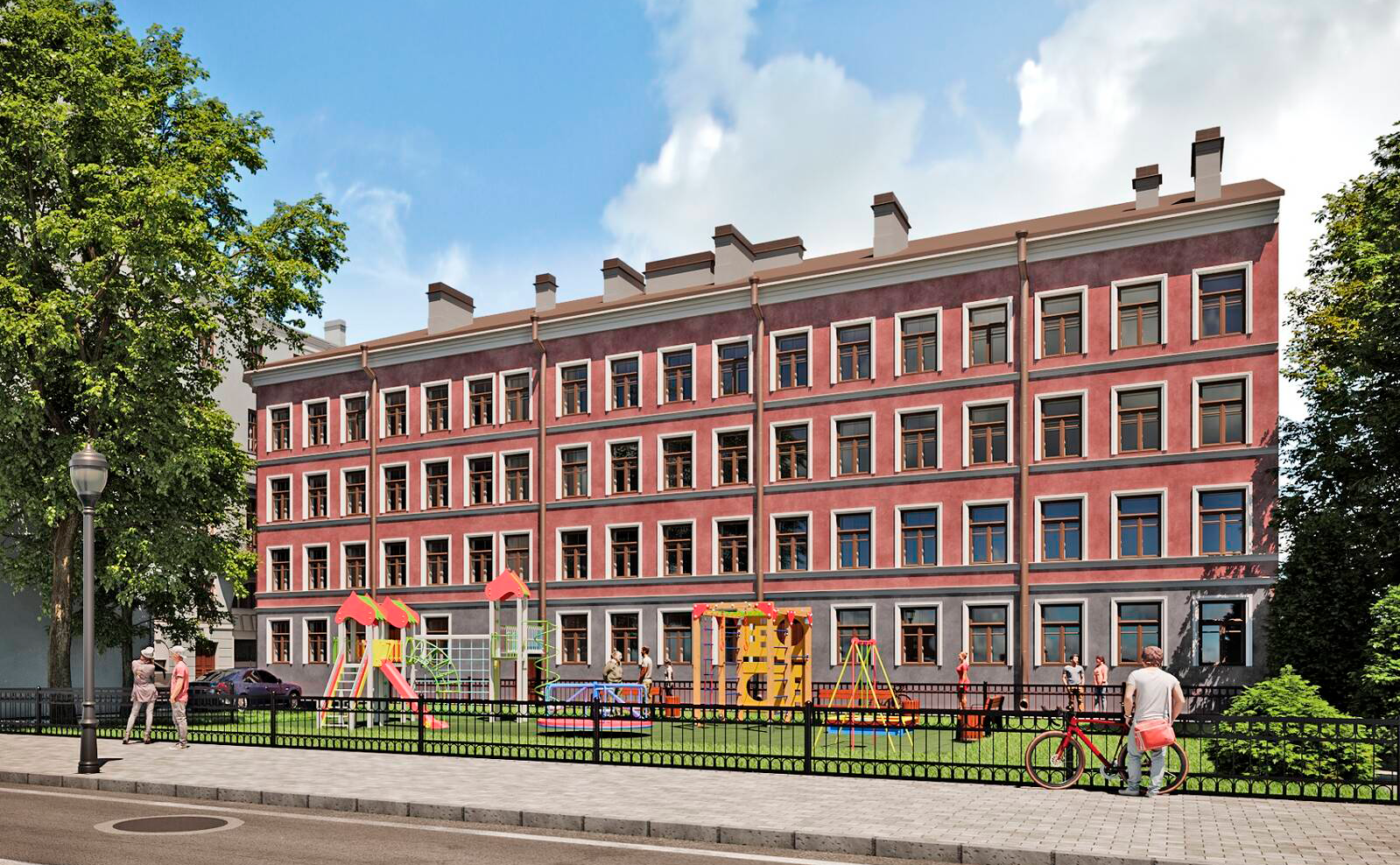 По периметру двора есть ограждение. Возле подъездов предусмотрены игровая и спортивная площадки с антитравматическим покрытием. Для владельцев автомобилей спроектирован паркинг открытого типа на 40 мест.