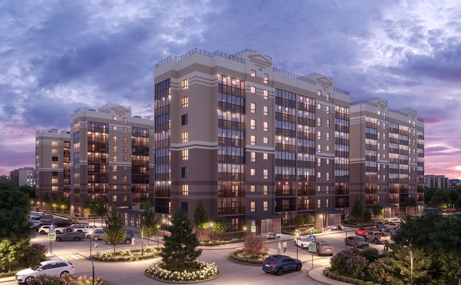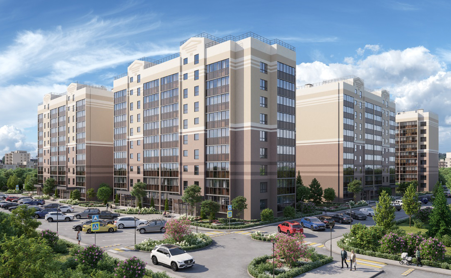 Жилой комплекс состоит из 14 домов, первая очередь включает 4 корпуса высотой в 9 этажей. Фасад выполнен в бежевых и шоколадных тонах. Во всех домах выполнена дизайнерская отделка входных групп и установлены современные лифты.