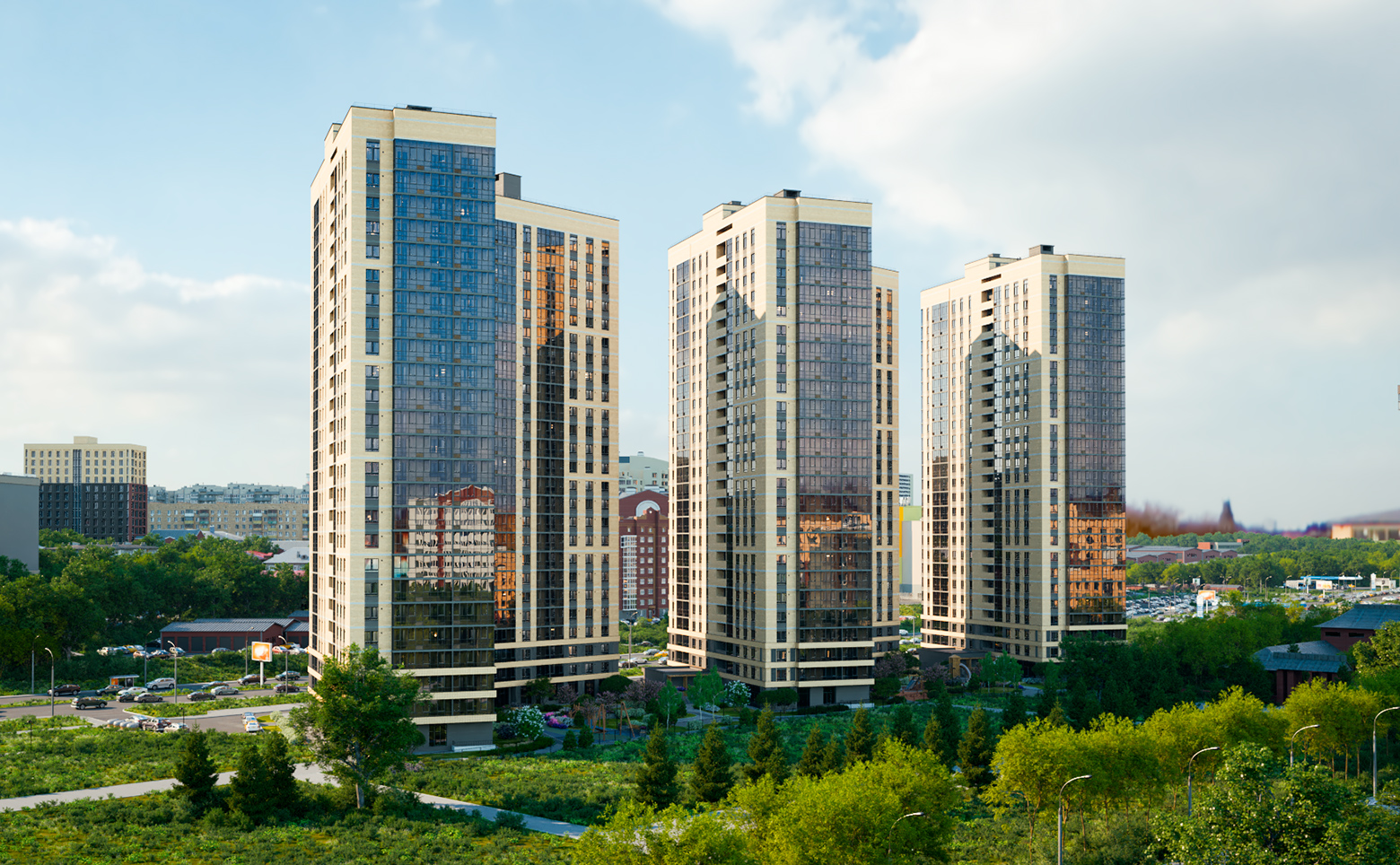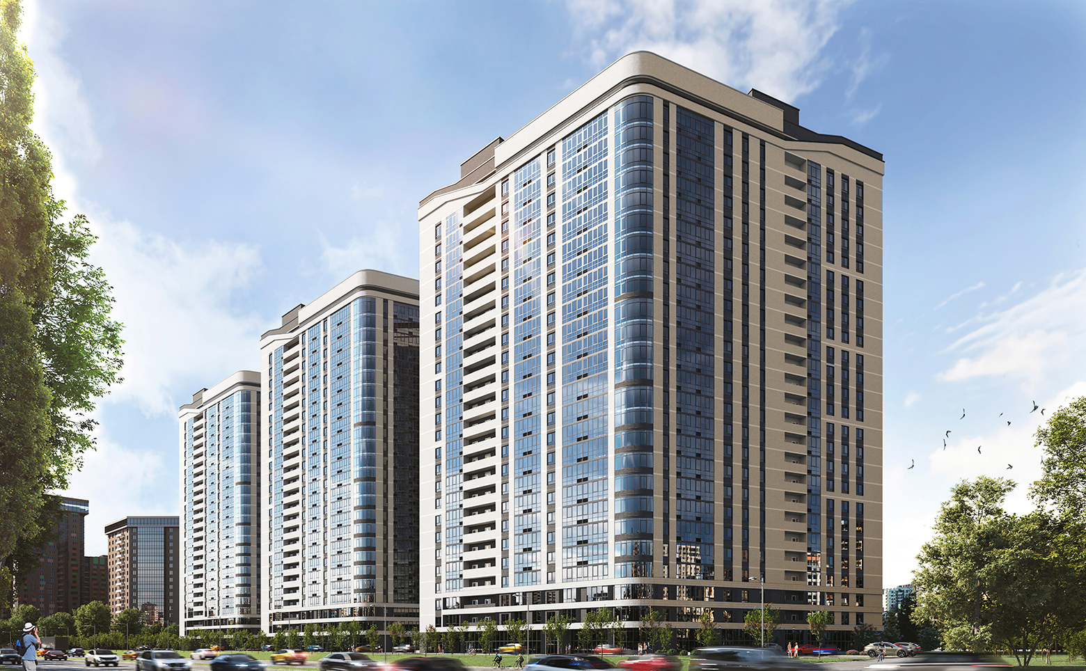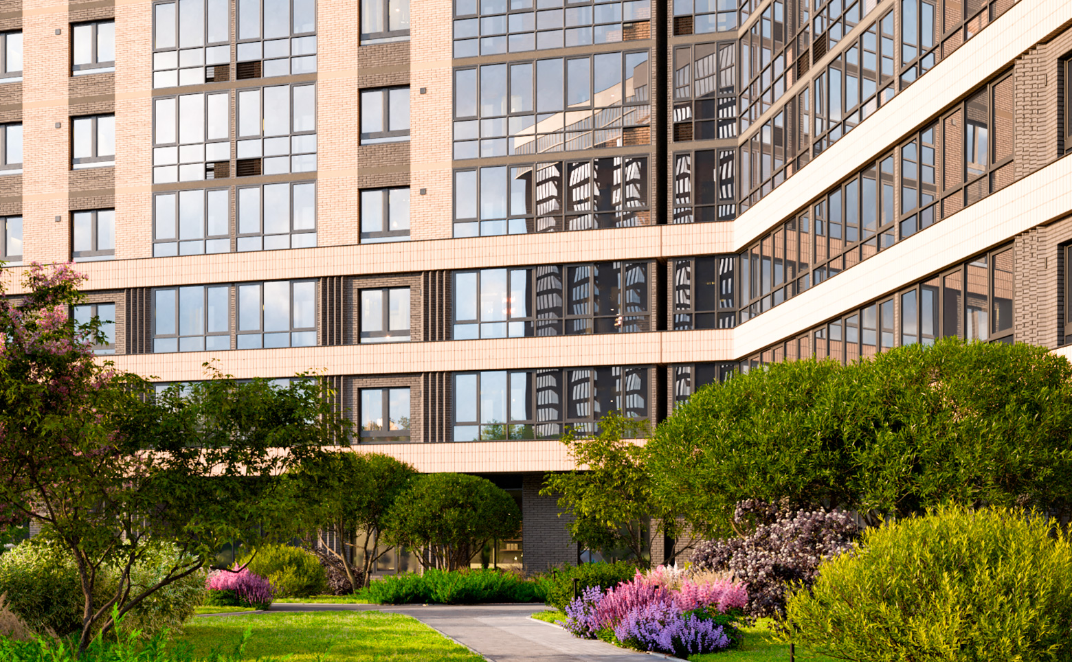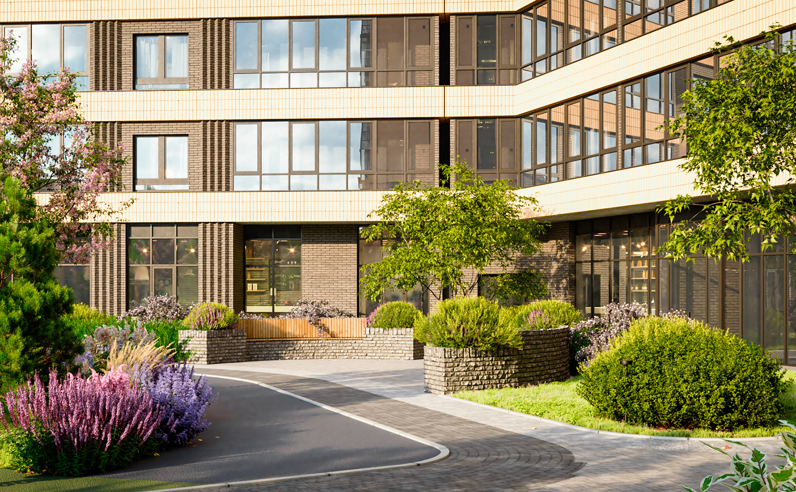 В проекте светлые, уютные зондированные дворы с видом на парк Аллея городов. Реализована концепция безбарьерной среды с входами на уровне земли. Безопасный и приватный двор без машин