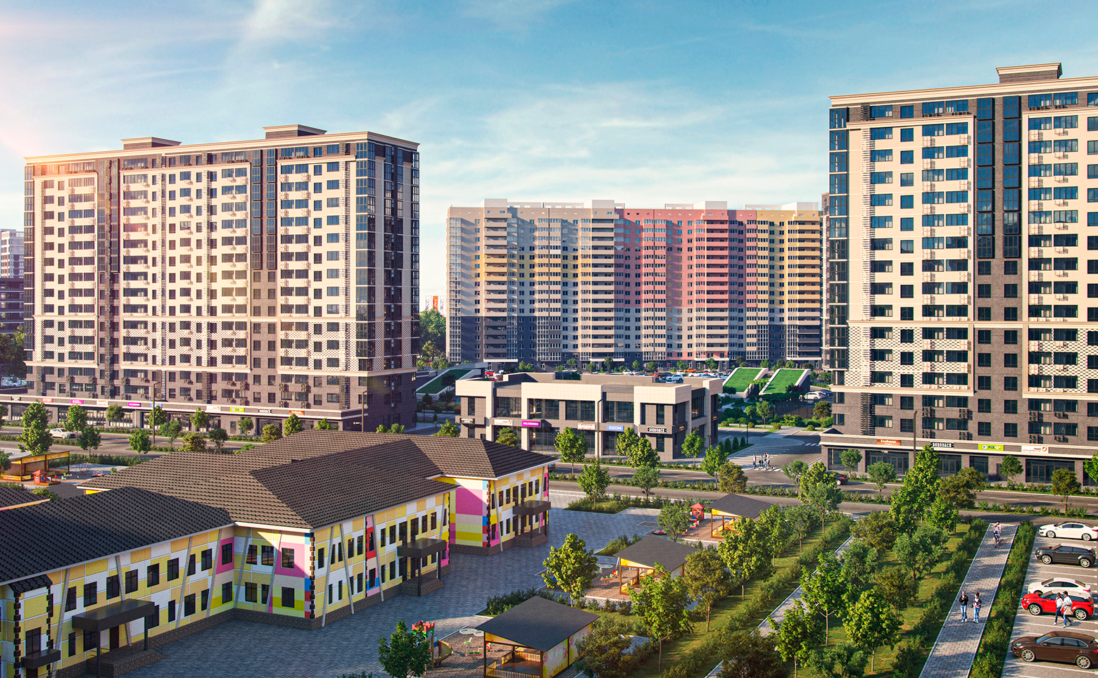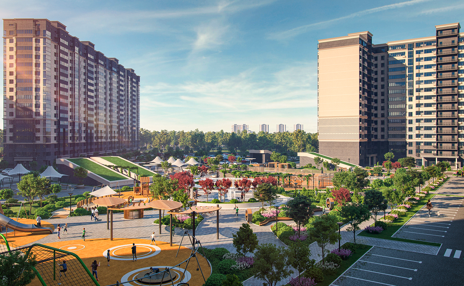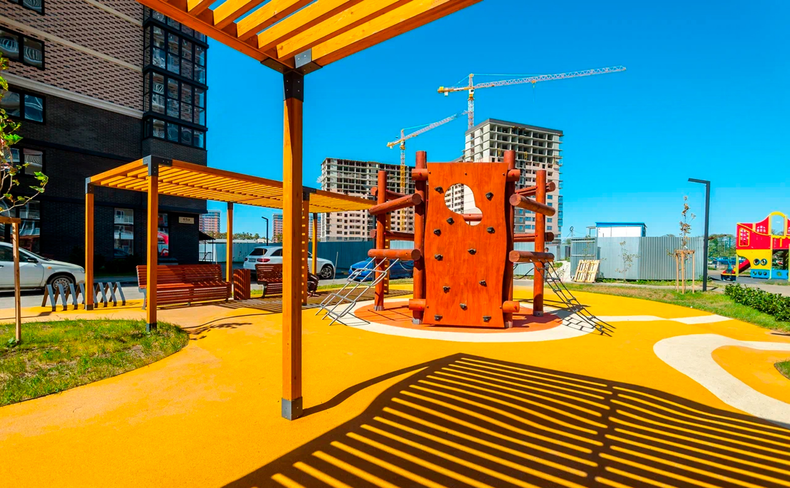 По всей территории ЖК ведется видеонаблюдение. Во дворе установлены детские площадки с гипоаллергенным покрытием, спортивные площадки, реализованы водные комплексы и тенистые перголы. Для владельцев автомобилей предусмотрены наземные паркинги.