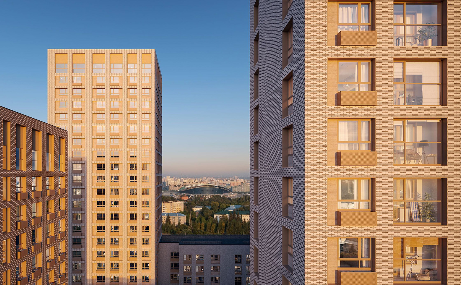 В проекте предложено множество планировочных решений: в наличии квартиры, как классического типа, так и европланировки. Доступны варианты квартир с гардеробной или мастер-спальней с отдельным санузлом, а также с остекленными лоджиями и с окнами в пол. Все квартиры сдаются с подчистовой отделкой. С верхних этажей открывается панорамный вид на реку Казанку, «Ак Барс Арену» и центр семьи «Казан».