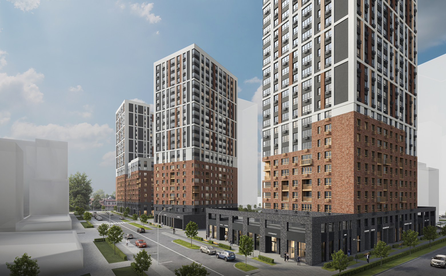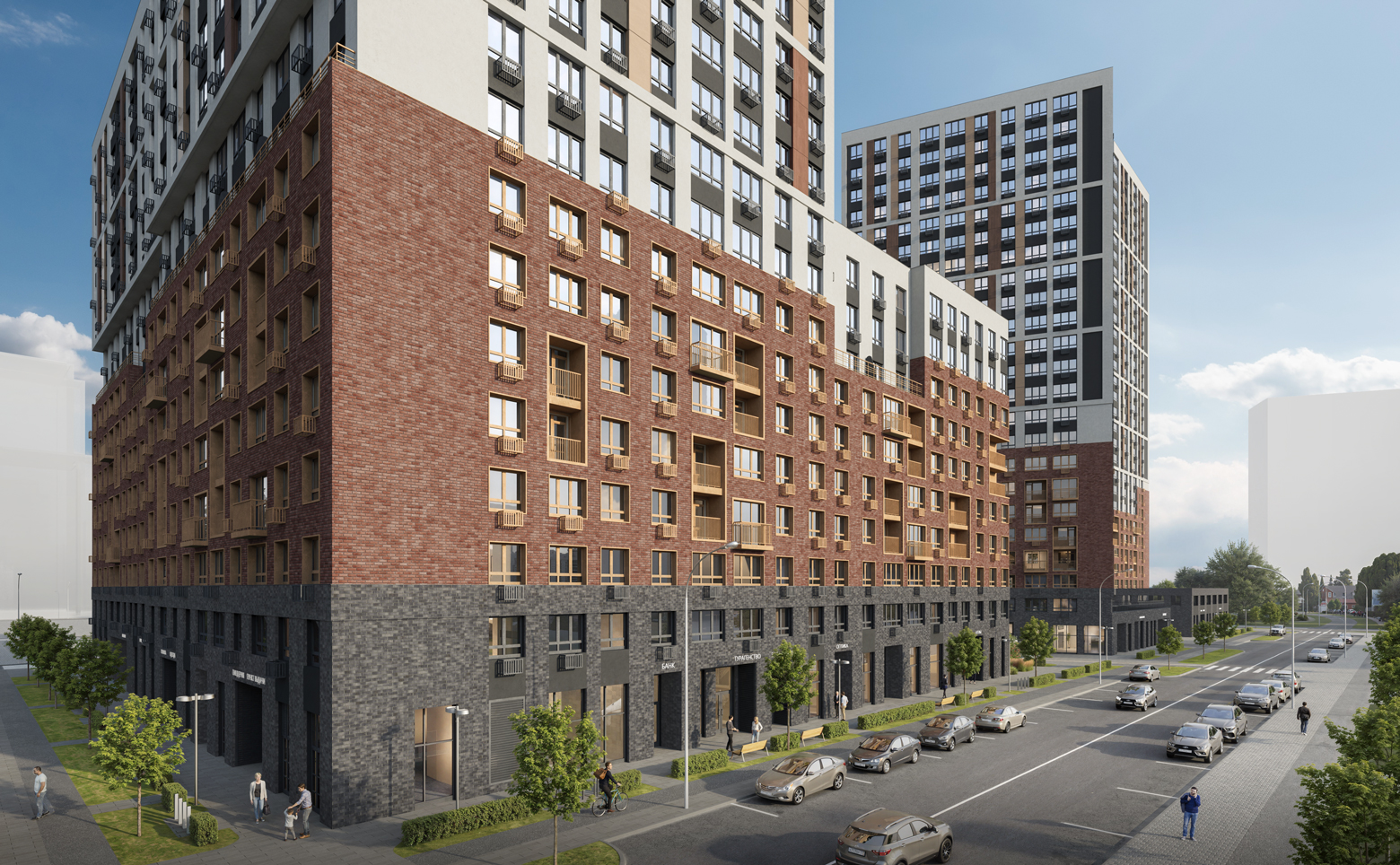 Жилой комплекс состоит их 5 секций переменной этажности от 10 до 30 этажей. Здания выполнены по кирпично-монолитной технологии и оформлены комбинированным фасадом, сочетающим декоративную штукатурку и вентилируемую систему с плиткой, металлическими и композитными элементами. Входные группы прозрачные, в холлах предусмотрена дизайнерская отделка. На первых этажах размещены вместительные колясочные и помещения для велосипедов, реализована безбарьерная среда.
