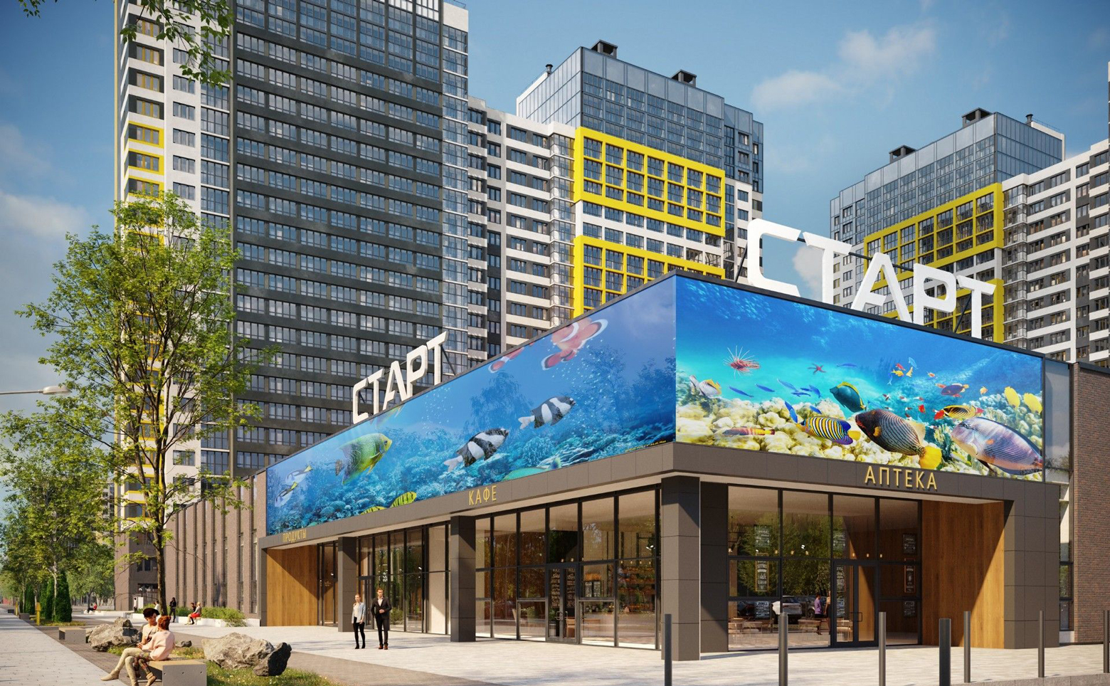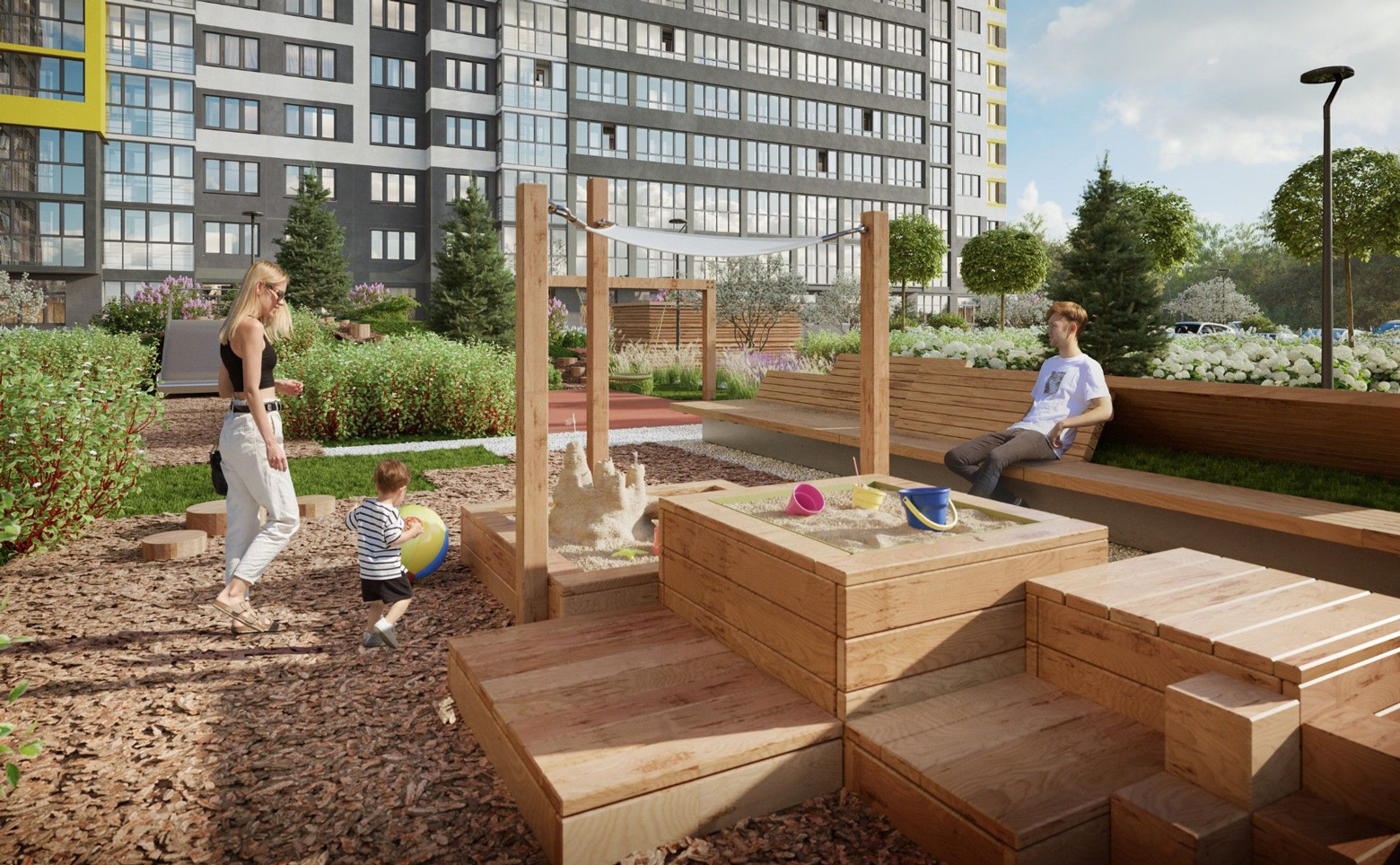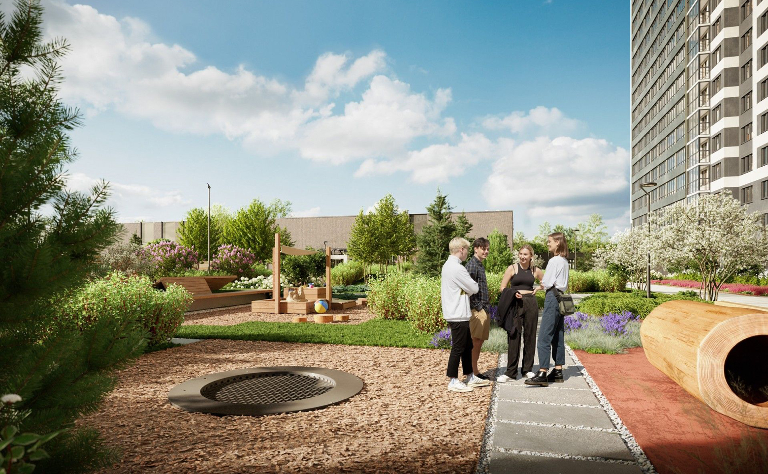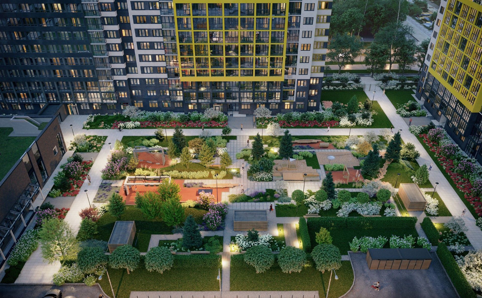 Во внутреннем дворе обустроены детские площадки. В жилом комплексе собственная торговая галерея. Для владельцев автомобилей предусмотрен подземный паркинг.