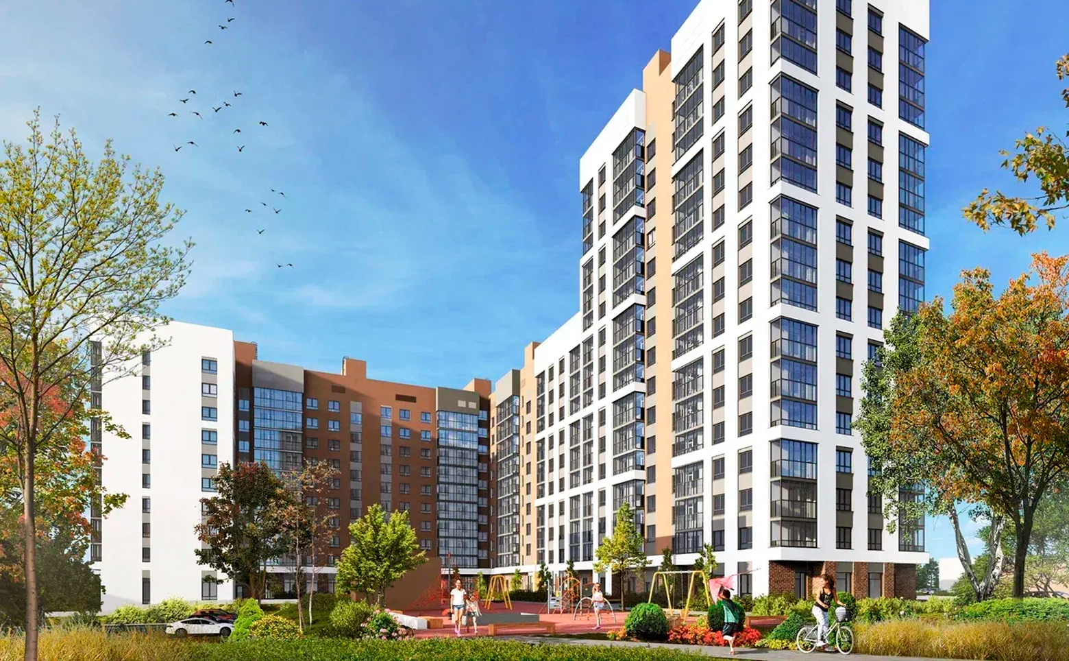В комплексе выполнено благоустройство и ландшафтный дизайн дворовой территории: высажены вечнозеленые растения, обустроены зоны отдыха, спортивная и детская площадки с безопасным покрытием. Созданы условия для хранения вещей и техники: индивидуальные келлеры и специальные места для велосипедов. Работает система контроля доступа, ведется круглосуточное видеонаблюдение. Для автомобилистов предусмотрен подземный паркинг.