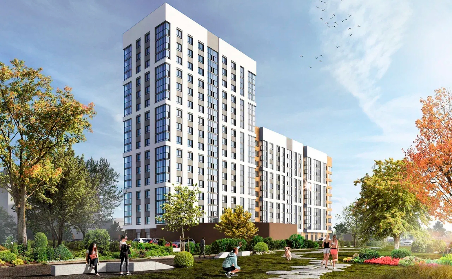 В проекте предлагаются студии и квартиры с 1–4 комнатами. Высота потолков составляет 2,6 м, установлены стандартные окна с двухкамерными стеклопакетами и остекленные лоджии с алюминиевым профилем. Жилье передается в подчистовой отделке: стальные входные двери, стены оштукатурены, пол с шумоизоляцией, выполнена гидроизоляция санузлов. Смонтированы розетки, выключатели, радиаторы, система отопления, водоснабжения и водоотведения. Установлены приборы учета, санузел оборудован унитазом, раковиной и смесителем.