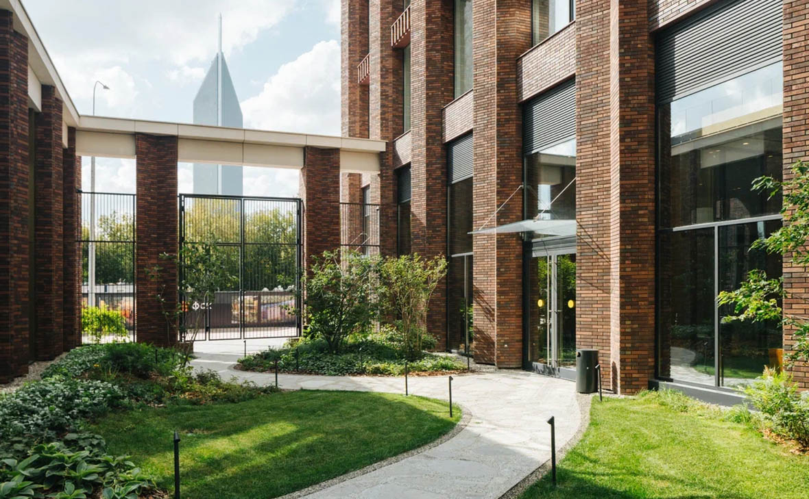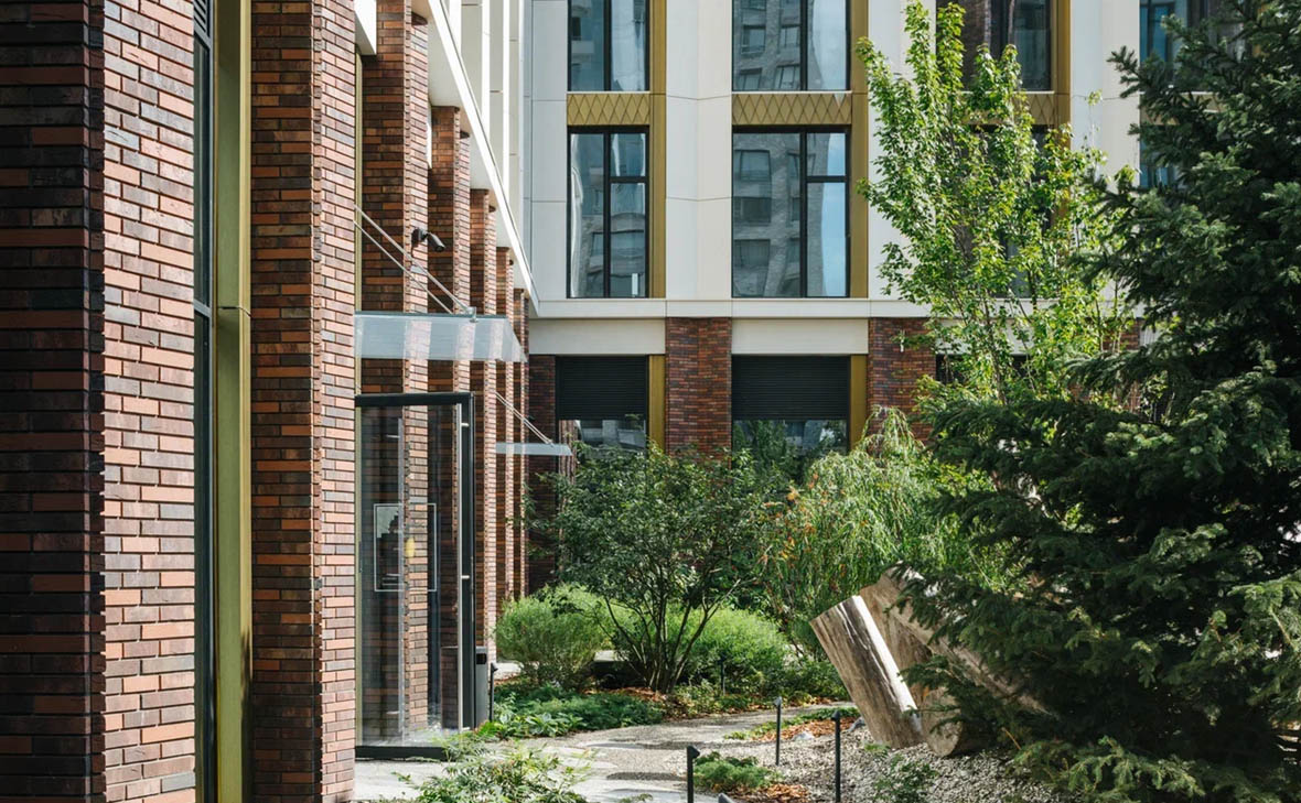 Во дворах, спроектированных Хироки Мадзуро, сделан разноуровневый ландшафт с холмами, горками, высокими деревьями и кустарниками. В проекте предусмотрены игровые зоны и площадки для отдыха, оборудованы лужайки для спорта и спроектирован пруд с деревянным настилом. Размещение дворового пространства на стилобате создает камерную атмосферу, а для владельцев автомобилей предусмотрен подземный двухуровневый паркинг с прямым доступом на лифте.