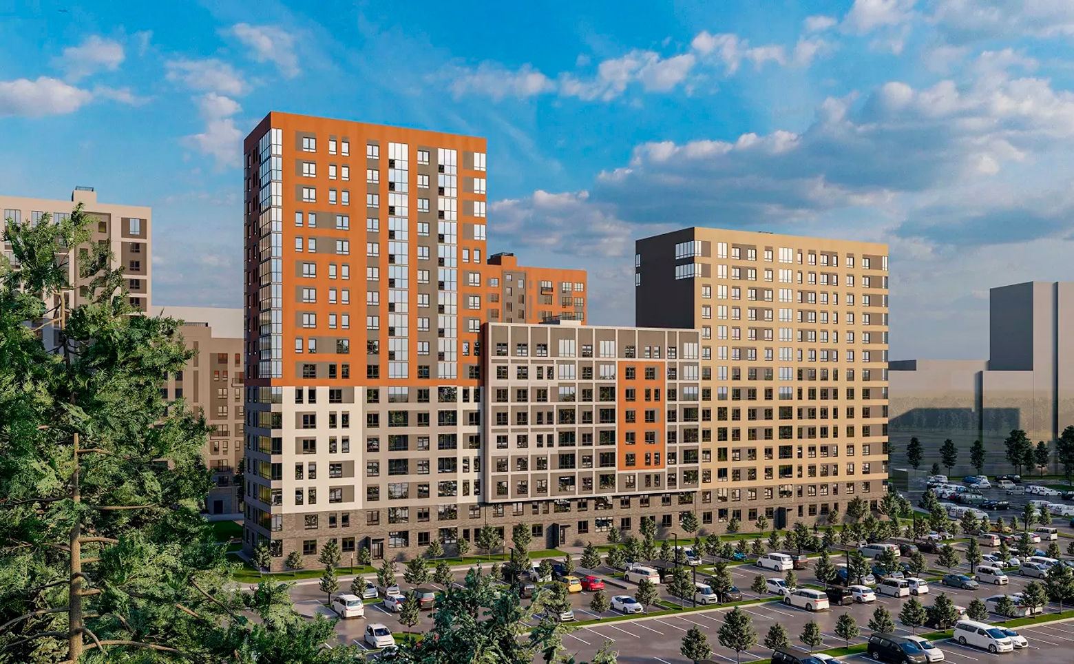 Жилой комплекс представляет собой 10 корпусов разной этажности с фоновой застройкой 8 этажей и башнями — доминантами с максимальной этажностью до 16 этажей. Фасады выполнены из светлой и темной штукатурки с клинкерной плиткой натуральных цветов.