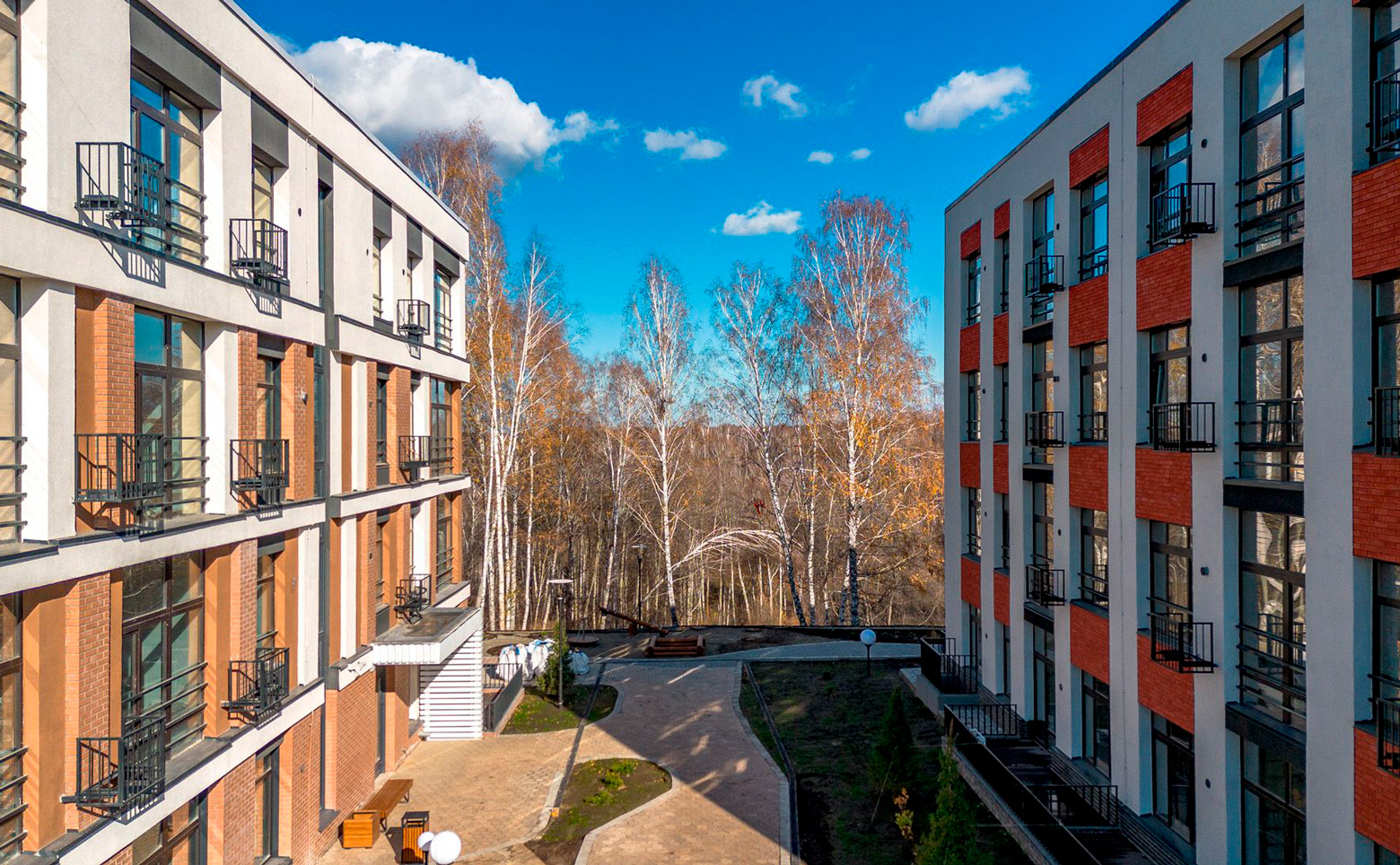 Территория жилого комплекса находится под постоянным видеонаблюдением и охраной профессиональной службы безопасности. Благоустройство жилого комплекса продумано в едином ключе с продолжением природного ландшафта, обустроены зелёные зоны для отдыха, тихие уголки для созерцания и релаксации. Оборудованы детские и спортивные площадки. Внутри жилого комплекса расположена кофейня. Уютный лесной парк у дома включает специальные территории с зонами барбекю и деревянные террасы для отдыха. Для владельцев автомобилей предусмотрен наземный паркинг.