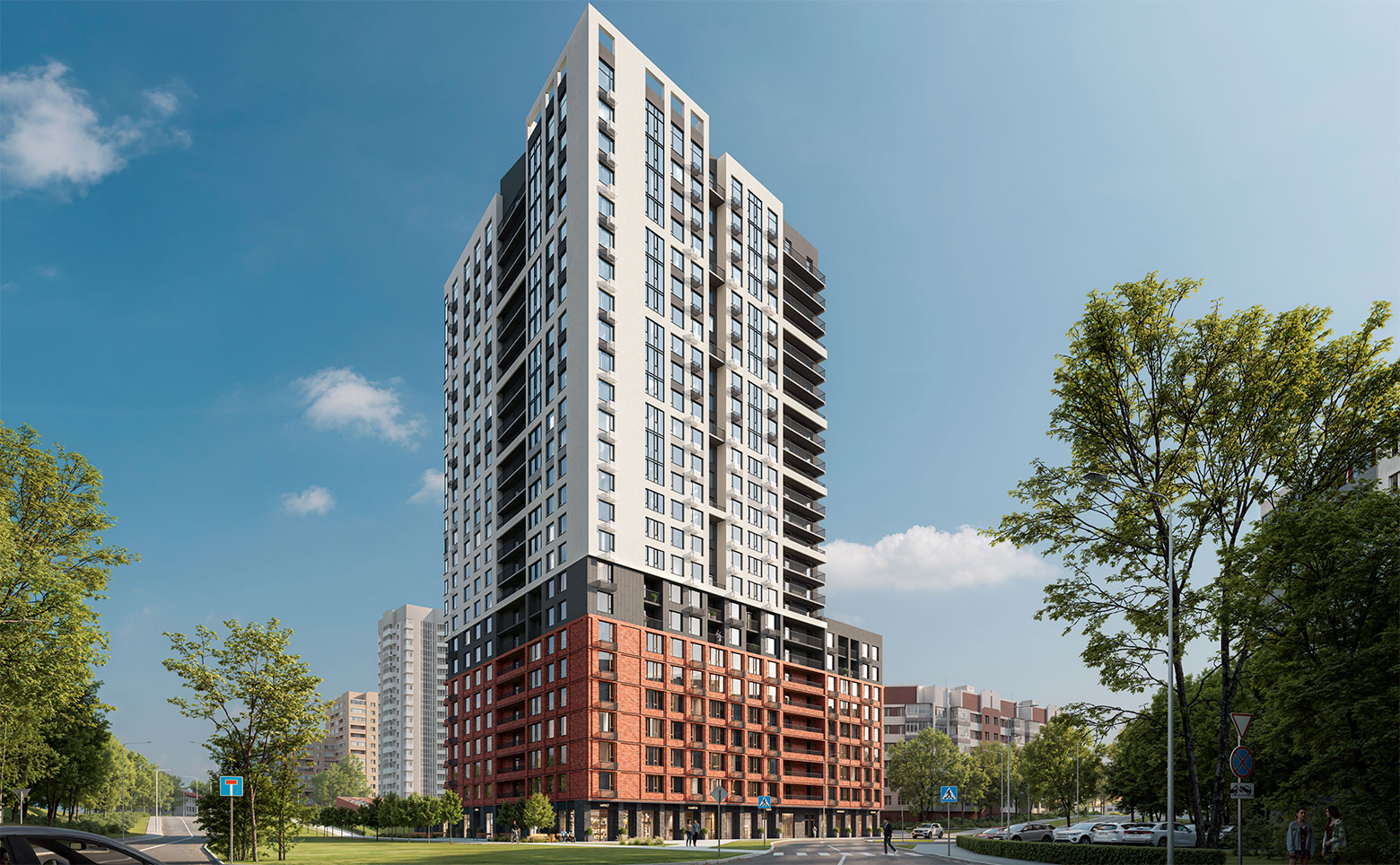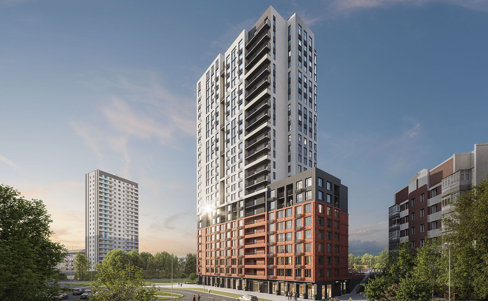 Жилой комплекс комфорт-класса высотой 24 этажа реализуется по кирпично-монолитной технологии с комбинированными фасадами. В корпусах предусмотрены пассажирские и грузовые лифты. Первые этажи отданы под коммерческие площади и входные группы с продуманной организацией пространства: вестибюли с потолками 4,2 метра выполнены в сдержанной современной эстетике, с зонами ожидания и коворкингом.