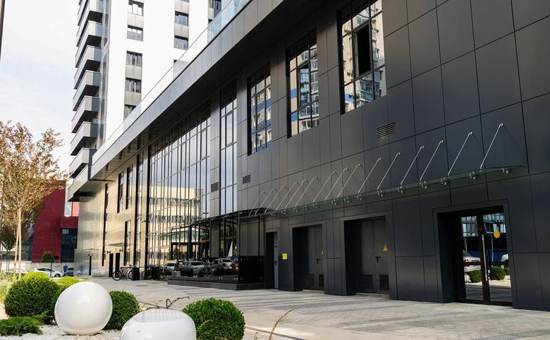 Территория комплекса благоустроена, на ней ведется видеонаблюдение, проведено озеленение. Во дворе находятся места для отдыха и сквер, на стилобате расположена площадка с фонтаном. На первом этаже спроектировано просторное лобби с баром и стойкой ресепшен. На 2 этаже расположился лечебный блок и СПА. На 3 этаже находятся технические помещения. Во всем комплексе установлена система обеззараживания воздуха через систему вентиляции. Для автовладельцев предусмотрен подземный паркинг.
