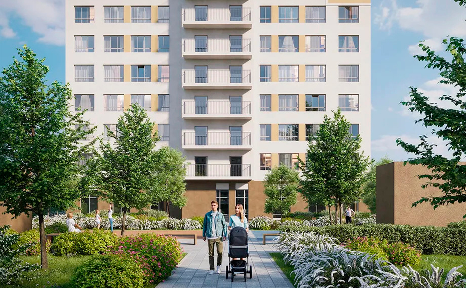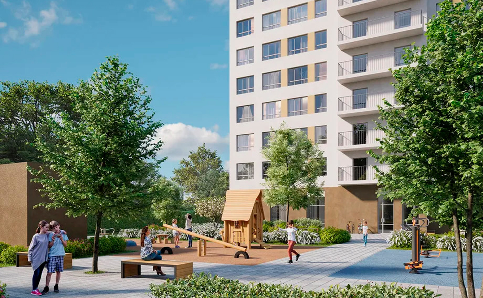 Во внутреннем дворе с ландшафтным дизайном предусмотрено несколько функциональных зон: игровые площадки для детей разных возрастов, зона тренажеров, площадка для командных игр. Территория имеет концепцию «двор без машин». Ведется круглосуточное видеонаблюдение. Для владельцев автомобилей предусмотрен подземный паркинг.