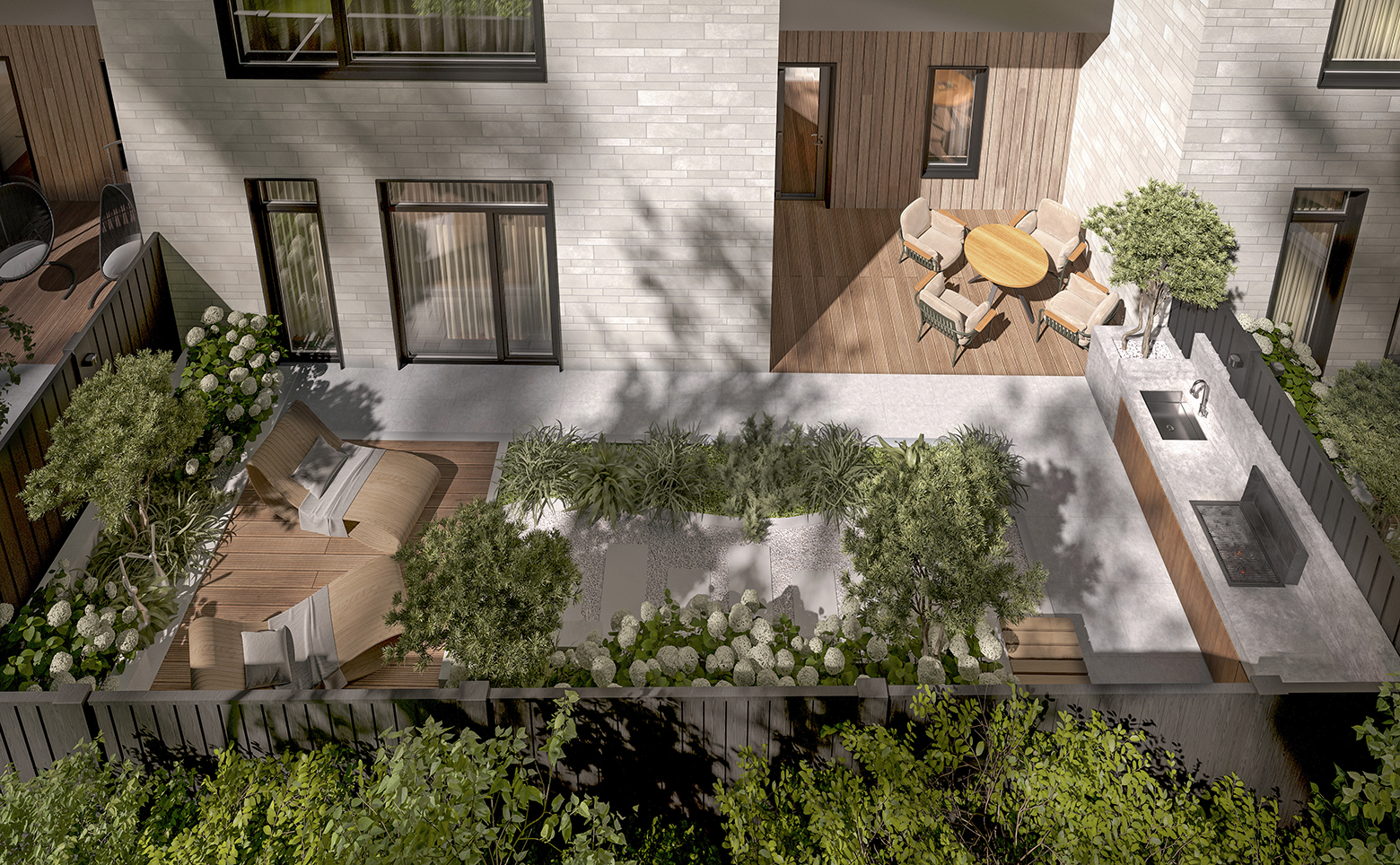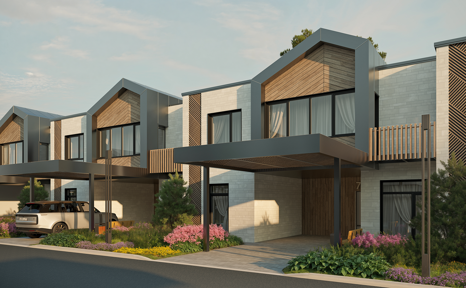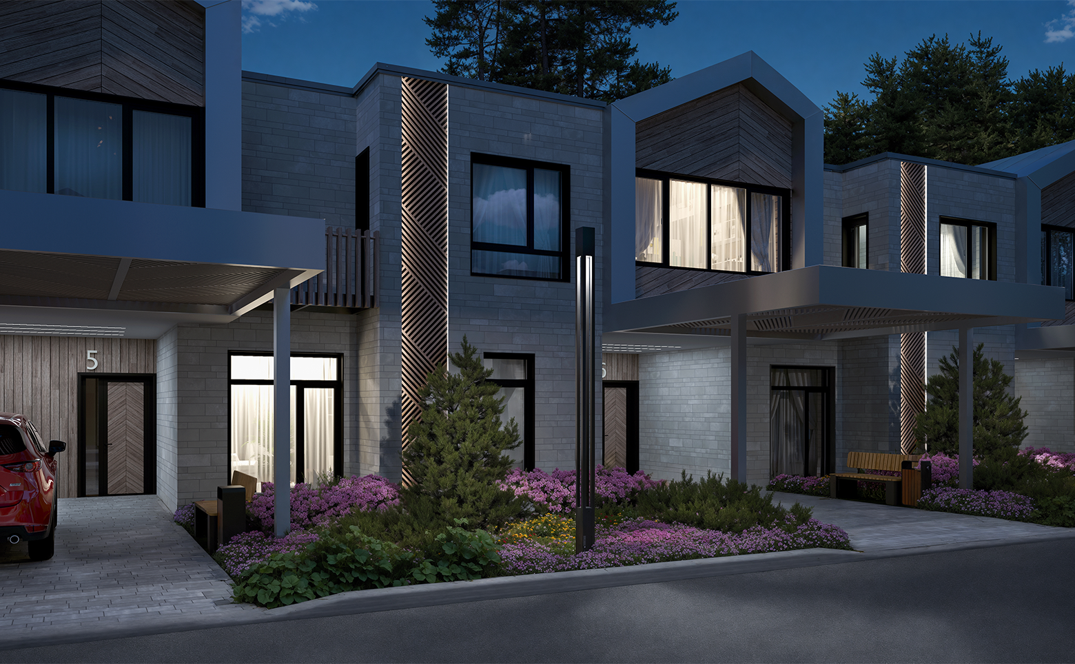 В проекте предлагаются дома площадью от 168 до 232 кв. м с увеличенными окнами из теплого алюминиевого профиля с двойным стеклопакетом. Из окон открываются виды на реку или лес, а с крыши — на панораму города. Высота потолков варьируется от 3 до 3,32 м. Каждый коттедж имеет приватное патио, мастер-спальню, кладовые и гардеробные, а также камин. Жилье передается без отделки, подключены все инженерные коммуникации: электричество, водоснабжение, канализация и газ.