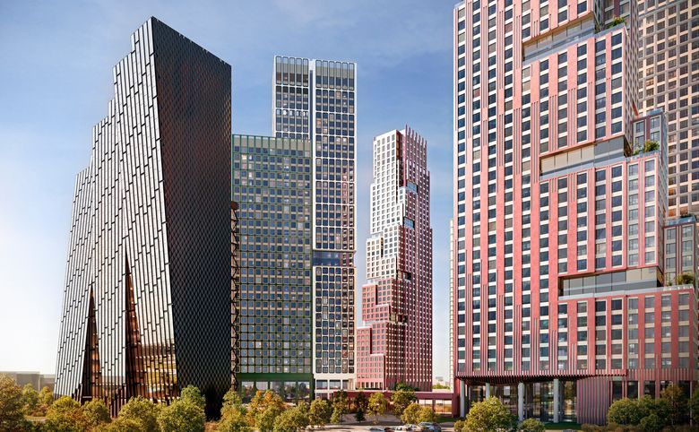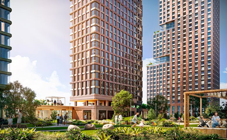 Жилой комплекс состоит из 9 зданий высотой от 7 до 64 этажей. Проект возведен по кирпично-монолитной технологии с вентилируемыми фасадами из керамогранита для обеспечения надежности и энергоэффективности конструкции. Он спроектирован как комфортная городская среда, в которой гармонично сочетаются приватность, технологичность и эстетика. Здания оснащены пассажирскими и грузовыми лифтами.