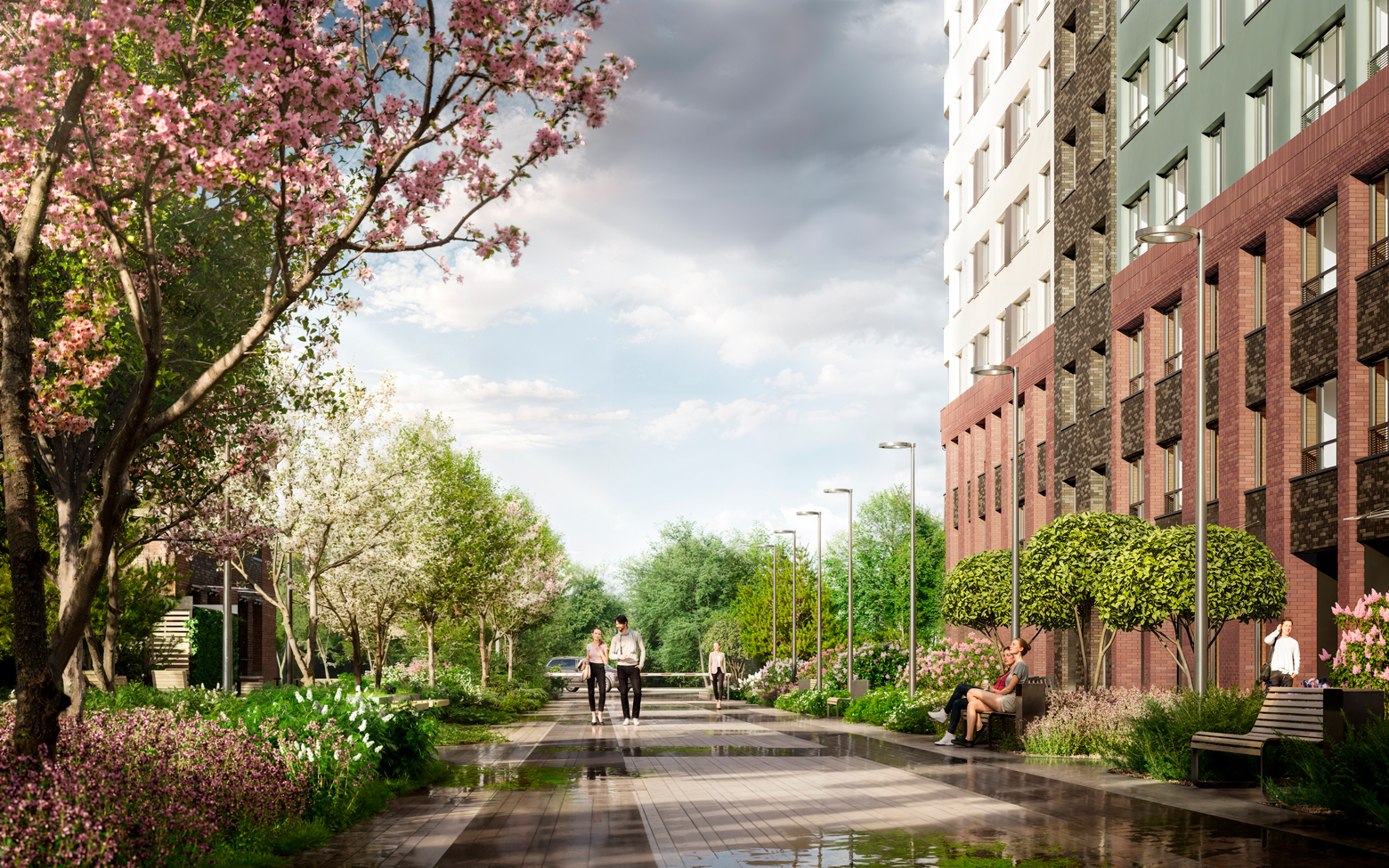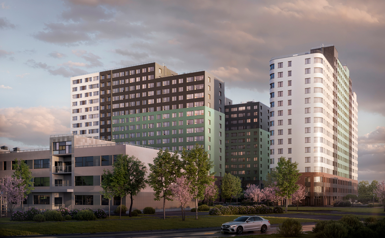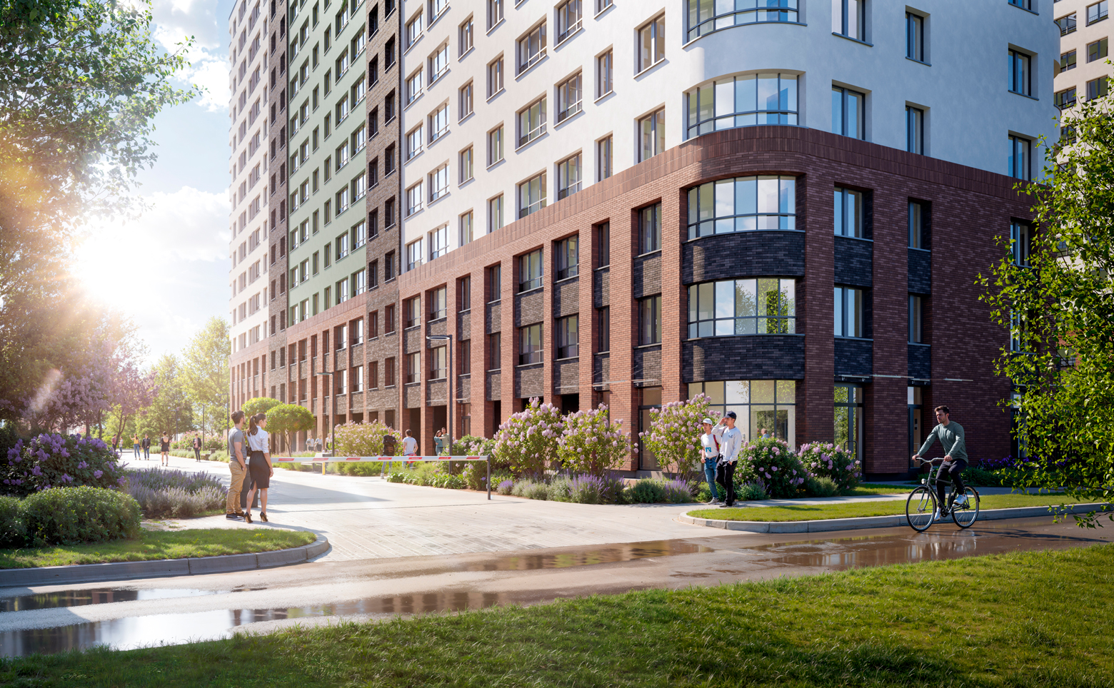 Жилой комплекс в едином архитектурном стиле состоит из 4 корпусов по 17 этажей каждый. Здания возведены по монолитной технологии, в каждом корпусе всего от 1 до 3 парадных. В комплексе выполнен авторский дизайн холлов и входных групп, предусмотрены сквозные парадные, зоны для ожидания и отдыха, колясочные.