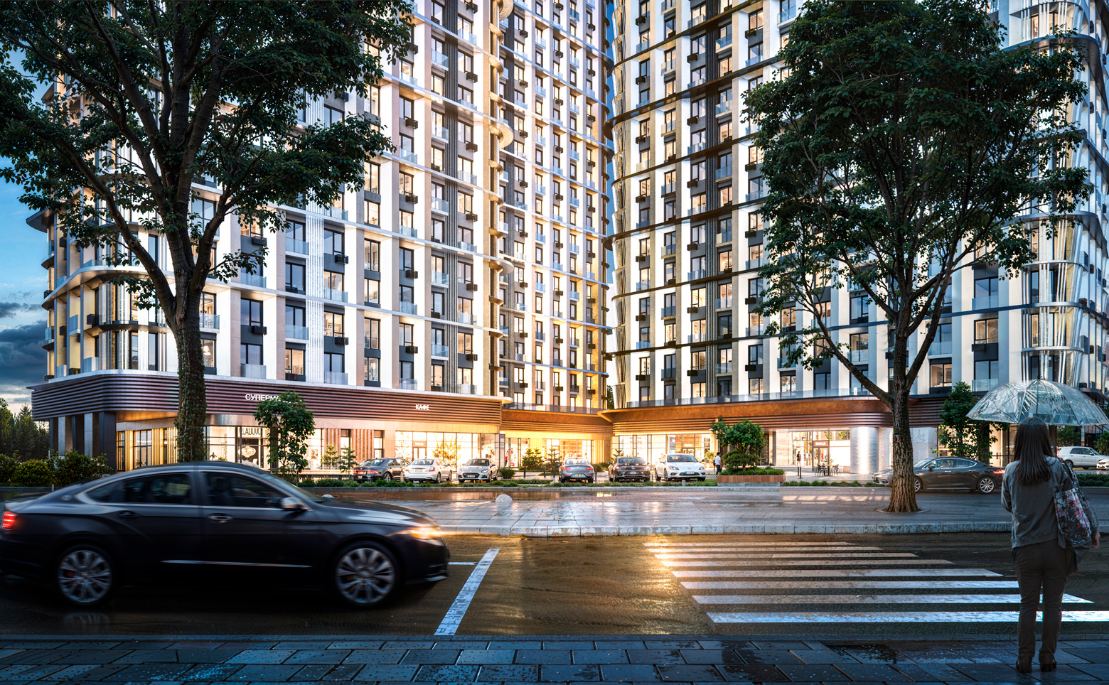 Жилой комплекс состоит из 2 башен высотой 17 и 21 этаж со встроенно-пристроенной одноэтажной стилобатной частью. Дома возведены по монолитной технологии строительства с вентилируемыми фасадами из панелей. Выполнена дизайнерская отделка входных групп, установлены современные скоростные лифты. В лобби расположены стойки ресепшен, мягкие зоны отдыха, комнаты матери и ребенка, комнаты для хранения детских колясок и велосипедов, на подземном уровне комплекса расположены индивидуальные кладовые помещения.