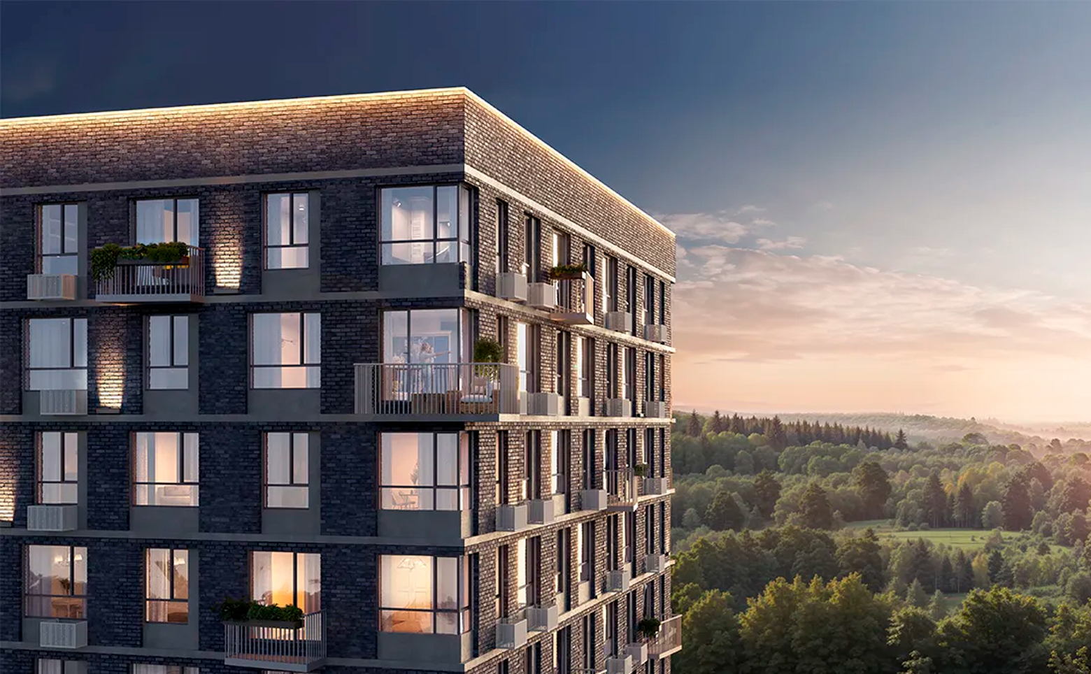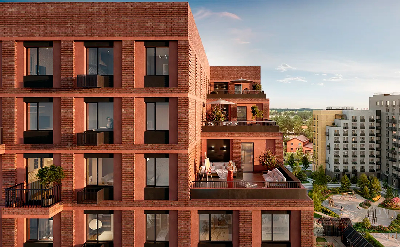 Жилой комплекс состоит из 17 домов переменной этажности с акцентной башней-доминантой. Возводится по монолитной технологии строительства, фасады облицованы кирпичом. Входные зоны и парадные имеют свой уникальный дизайн. На первых этажах обустроены зоны для ожидания курьера или такси. Все входы расположены на уровне земли, чтобы среда была безбарьерной. Установлены пассажирский и грузовой лифты.