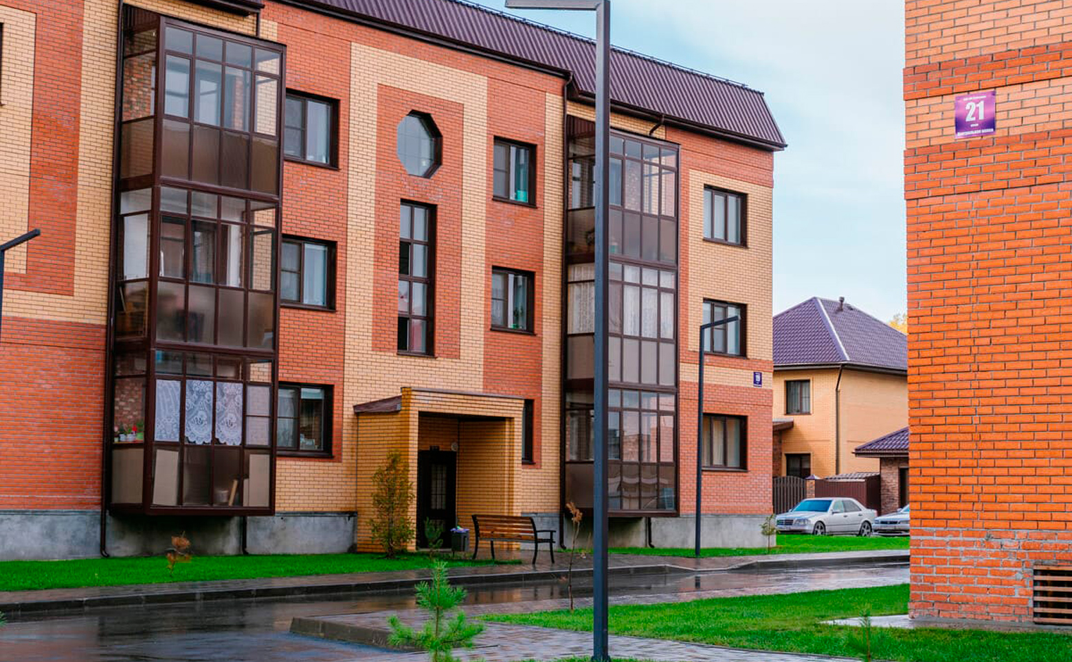 Жилой комплекс представляет собой малоэтажную застройку. Возводятся дома с использованием кирпичной технологии строительства и фасадами из облицовочного кирпича.