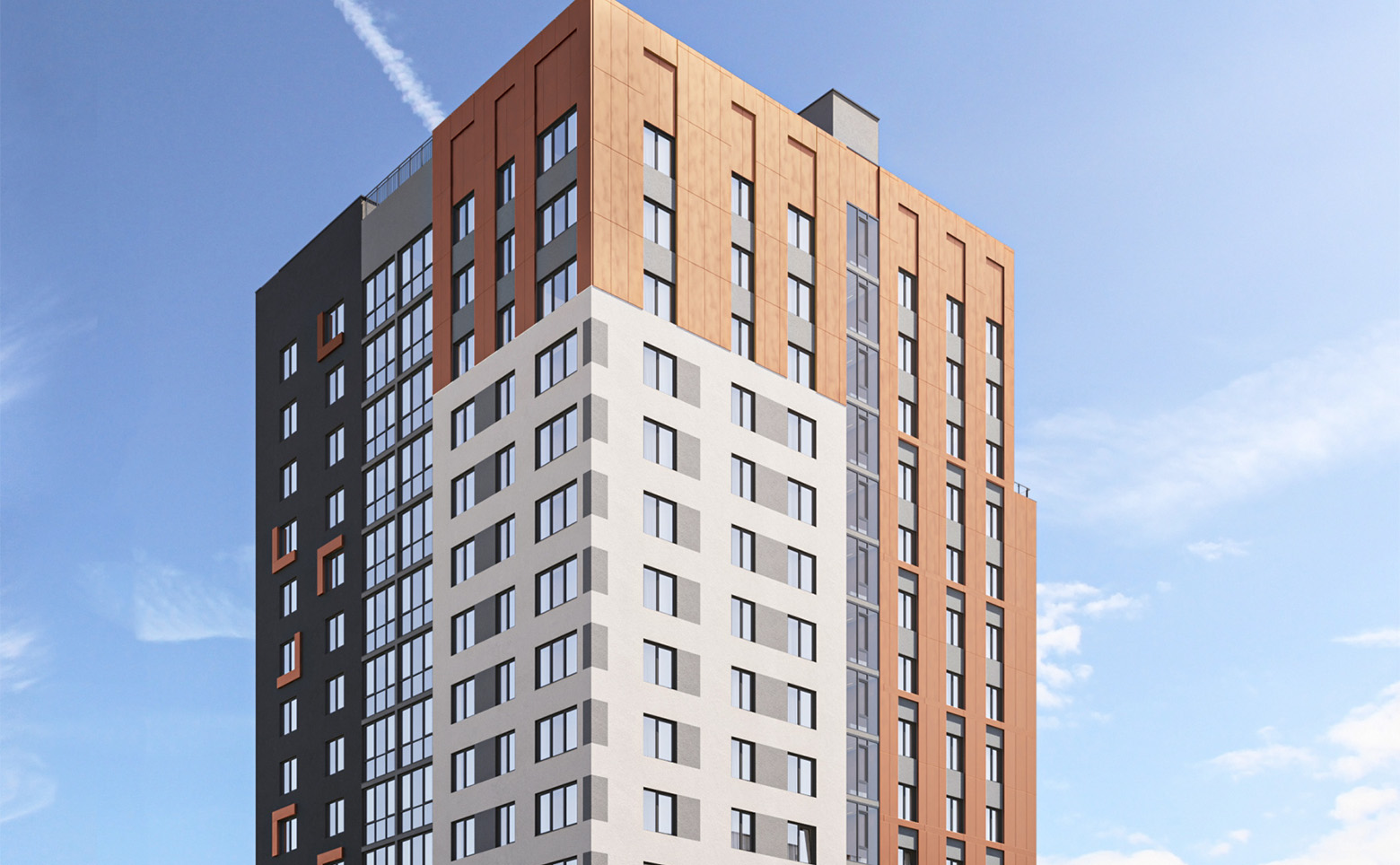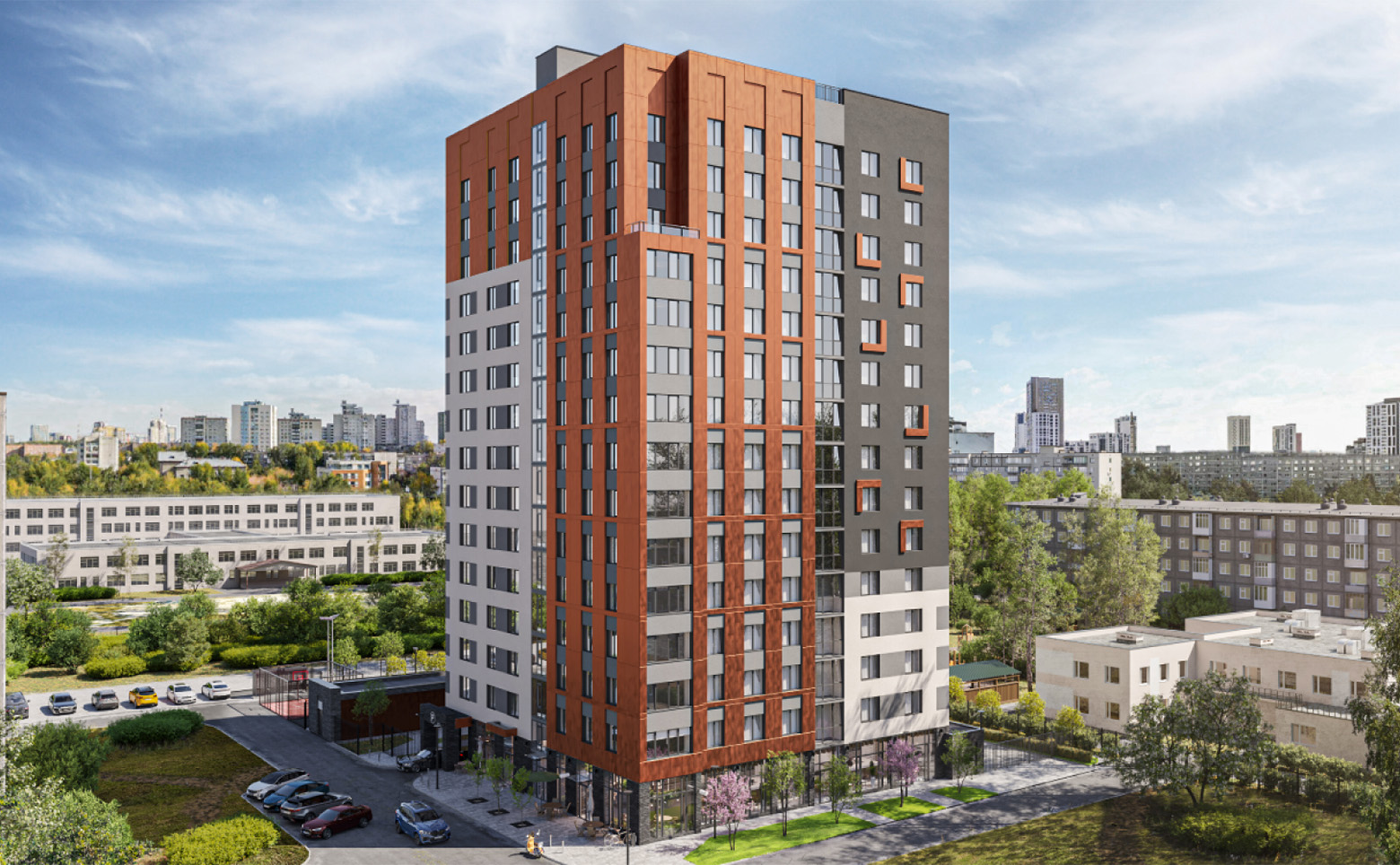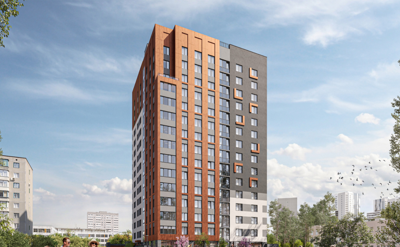 Жилой комплекс представлен в виде монолитного дома высотой 15 этажей. Дом возводится по долговечной кирпично-монолитной технологии, в отделке фасада использованы композитные панели. В проекте выполнена дизайнерская отделка входных групп, установлены современные скоростные пассажирский и грузовой лифты. На первом этаже расположен отдельный технический санузел для хозяев домашних животных.