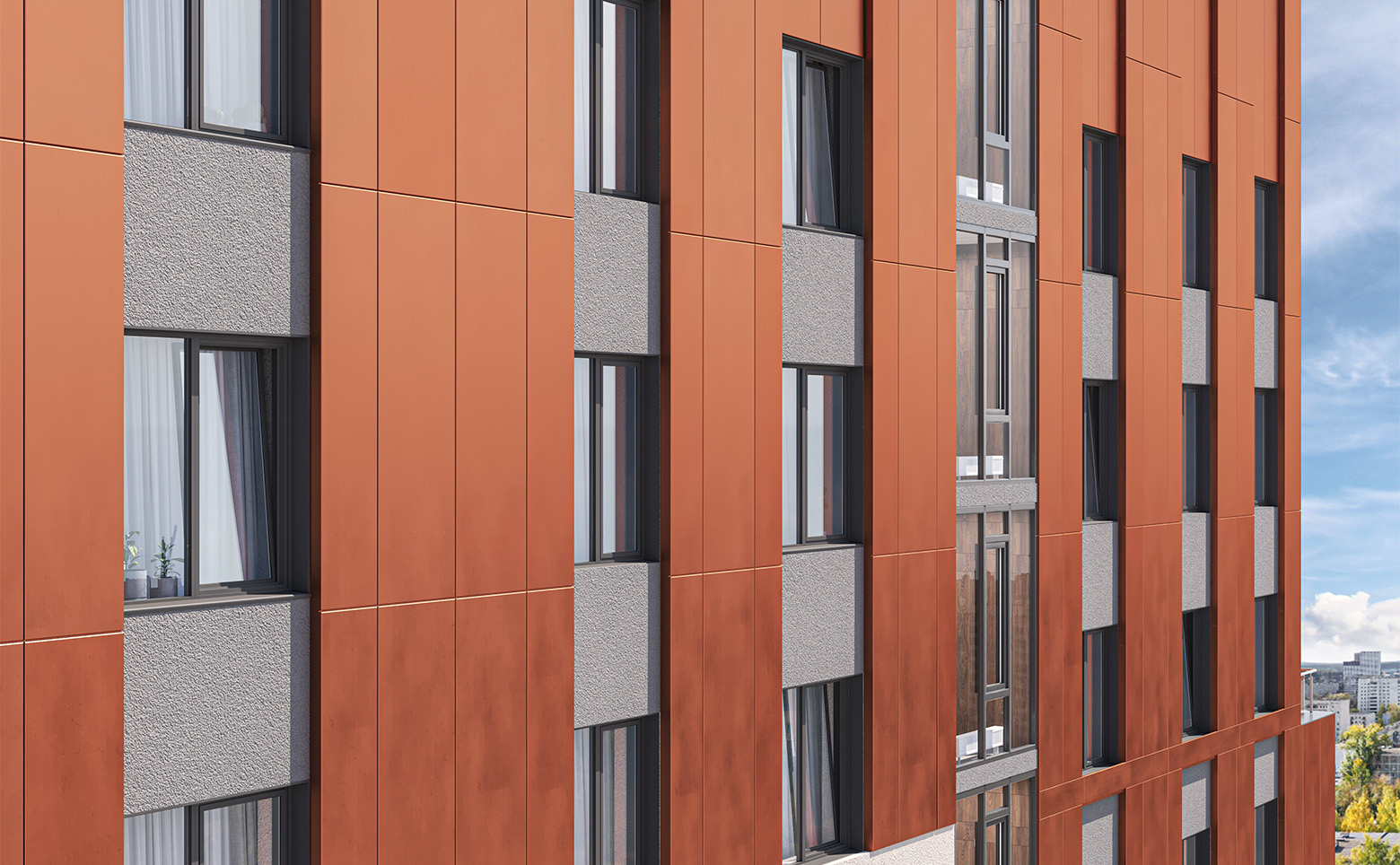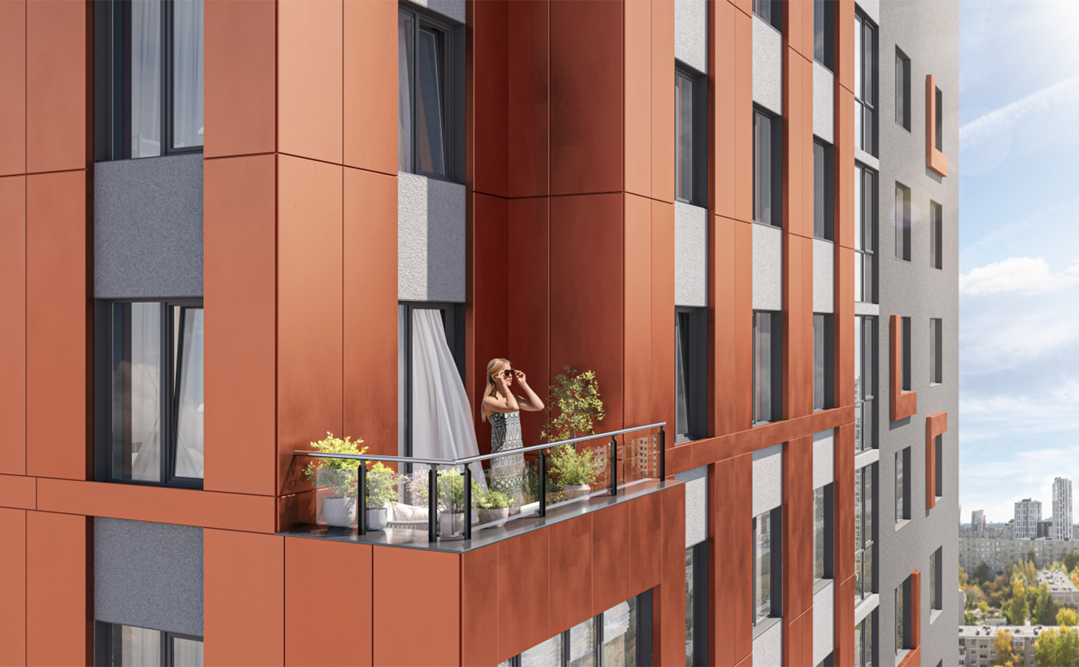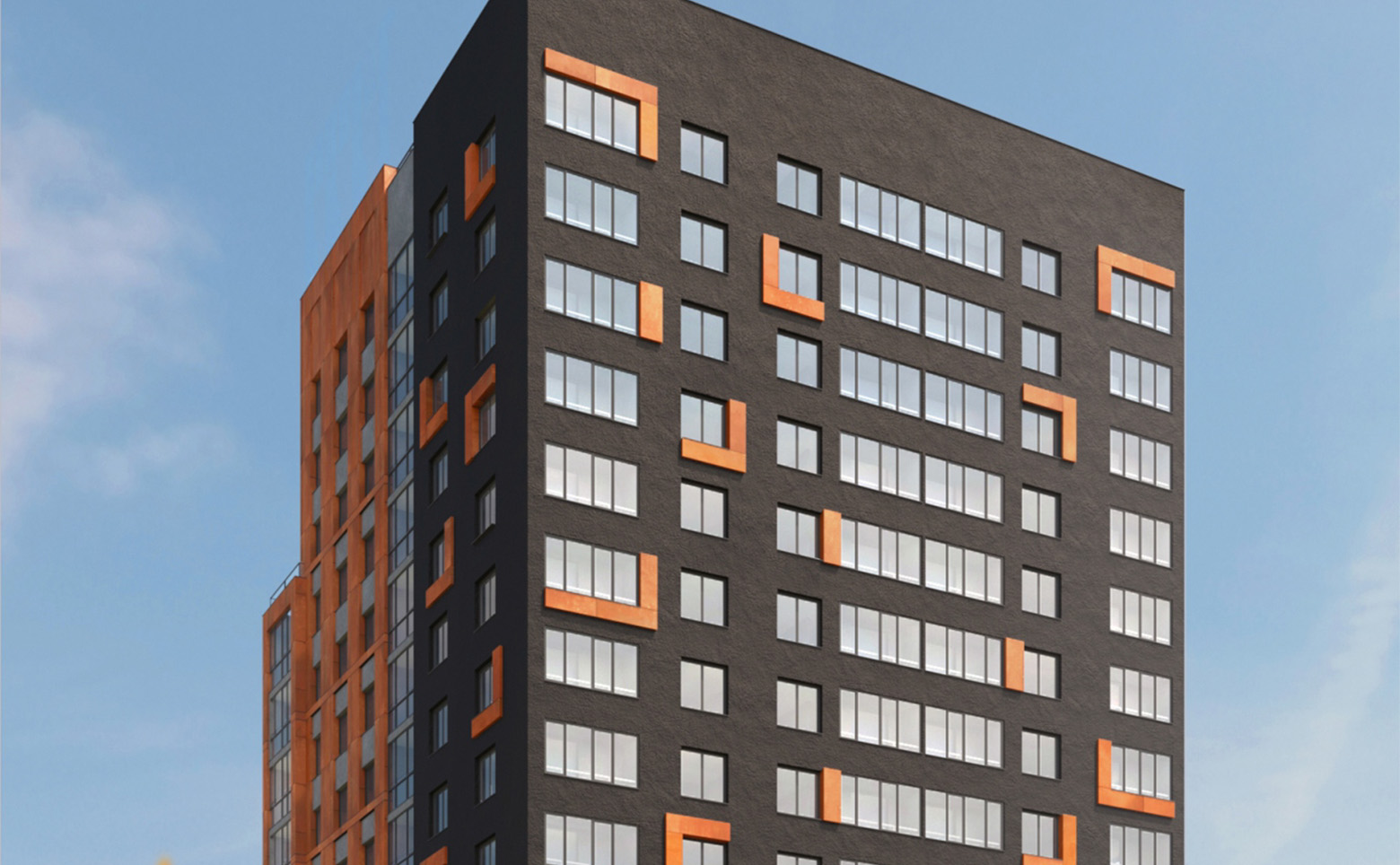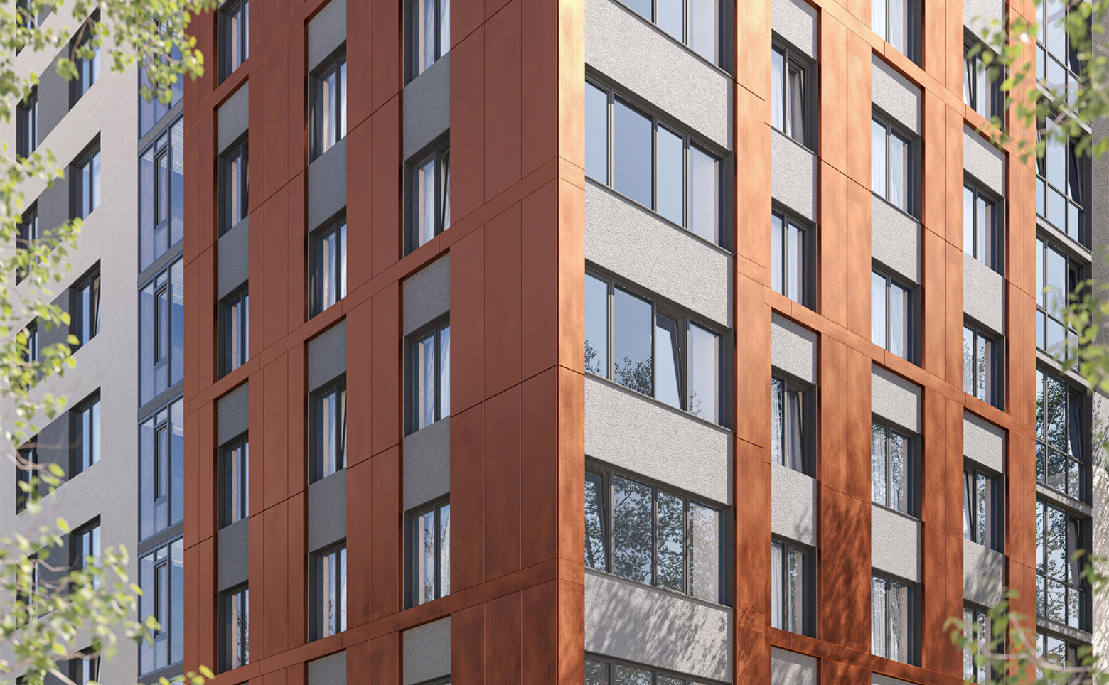 Жилой комплекс представлен в виде монолитного дома высотой 15 этажей. Дом возводится по долговечной кирпично-монолитной технологии, в отделке фасада использованы композитные панели. В проекте выполнена дизайнерская отделка входных групп, установлены современные скоростные пассажирский и грузовой лифты. На первом этаже расположен отдельный технический санузел для хозяев домашних животных.
