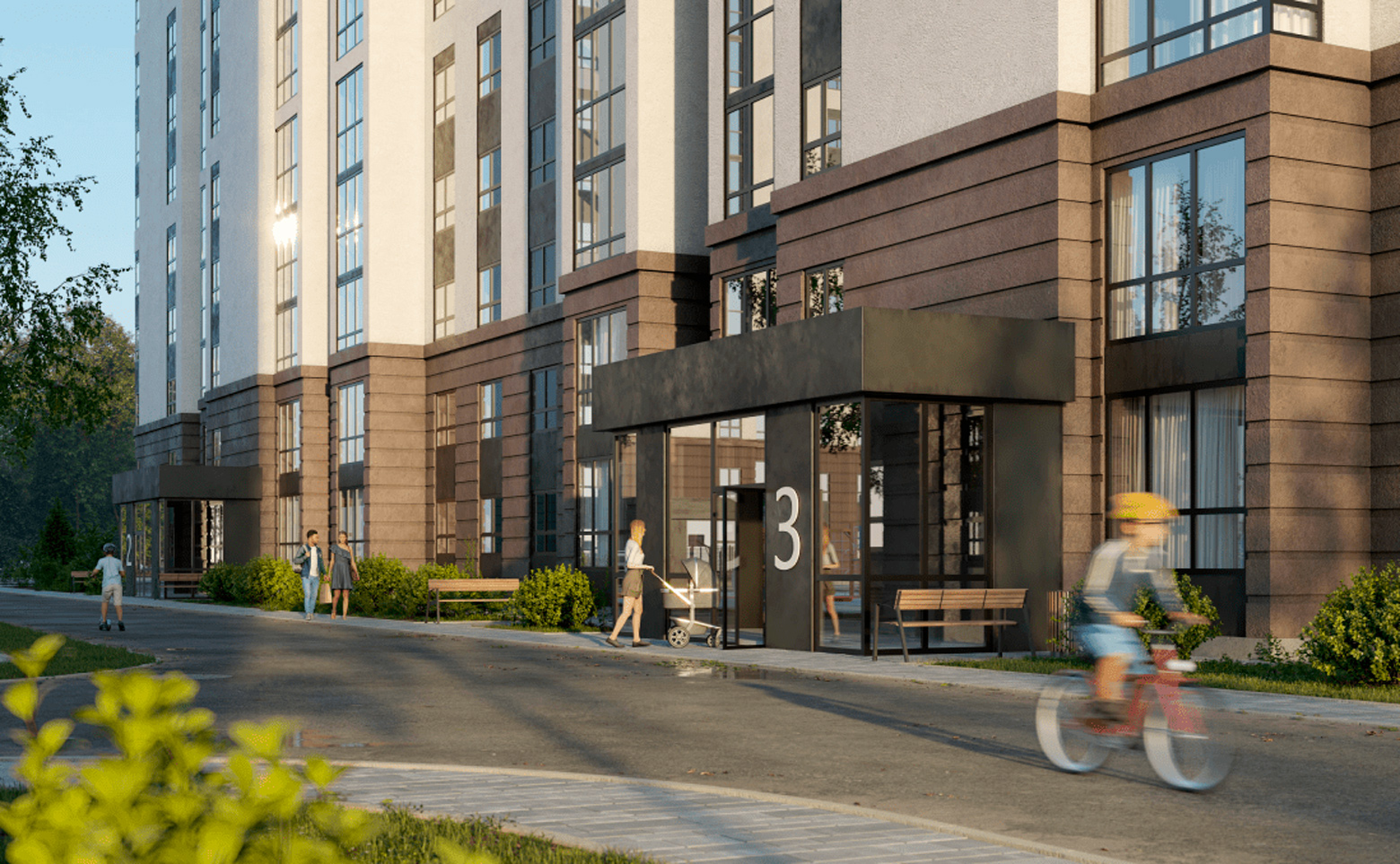 Жилой комплекс состоит из 3 корпусов высотой в 14 этажей. В оформлении стен зданий используется отделка по системе «мокрый фасад», а первые этажи облицованы клинкерной плиткой. В домах установлены современные скоростные лифы и предусмотрены кладовые помещения.