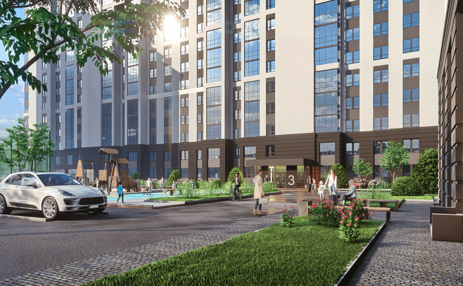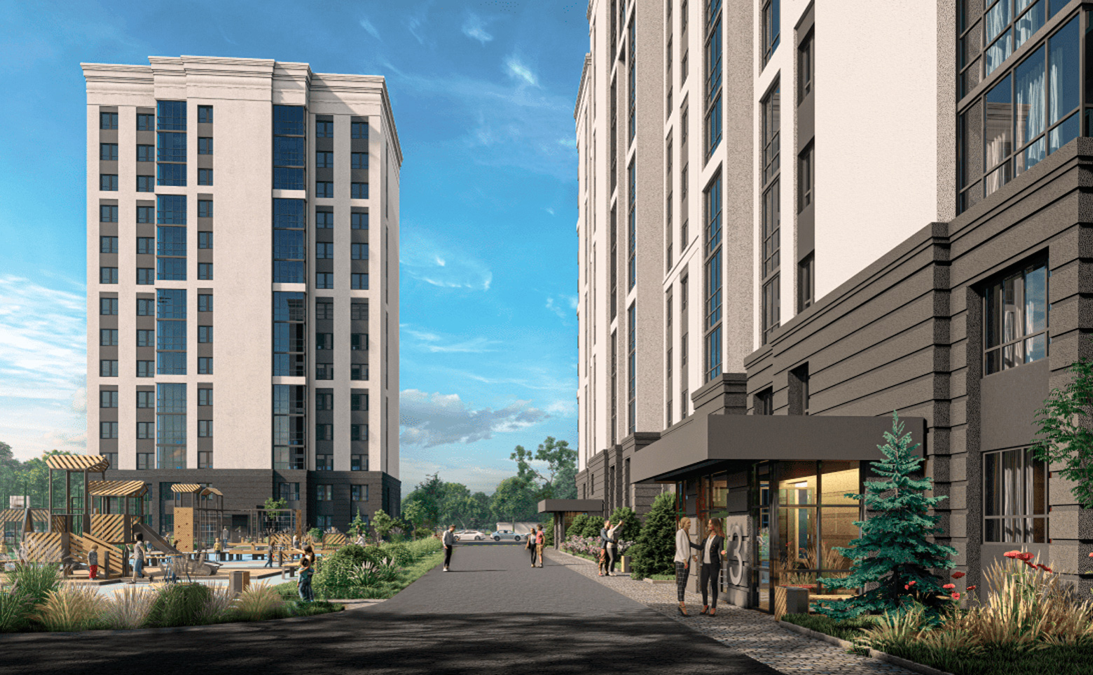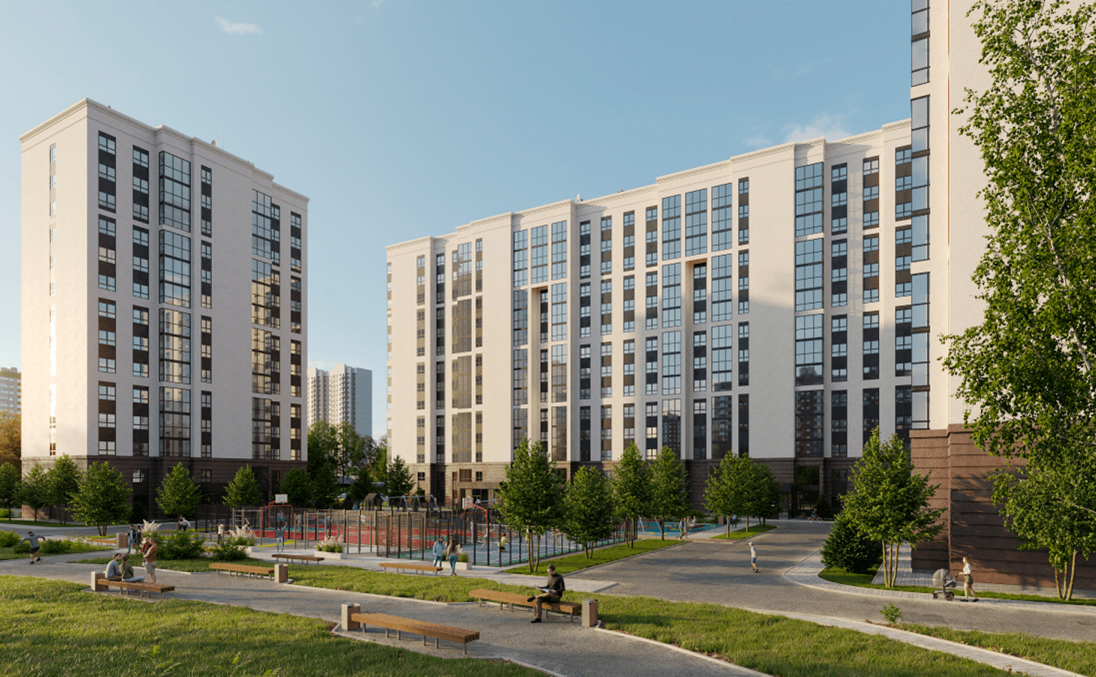 На территории жилого комплекса обустроены детские и спортивные площадки для волейбола и баскетбола, предусмотрены площадки для выгула собак. Территория проекта реализована по концепции «двор без машин». Для владельцев автомобилей предусмотрена стоянка.